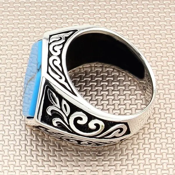 Прямоугольное мужское серебряное кольцо с османским мотивом, Сделан...