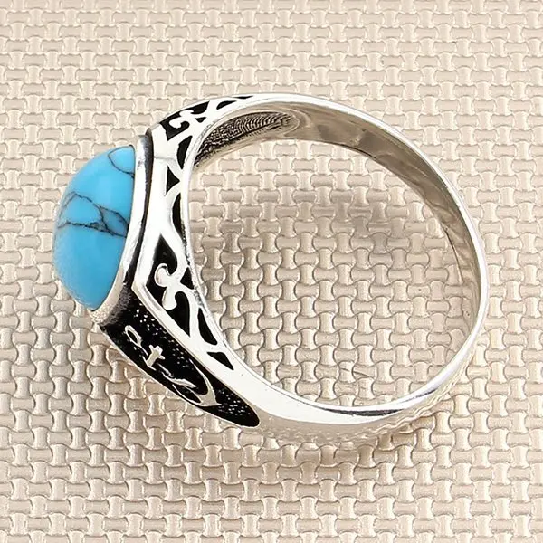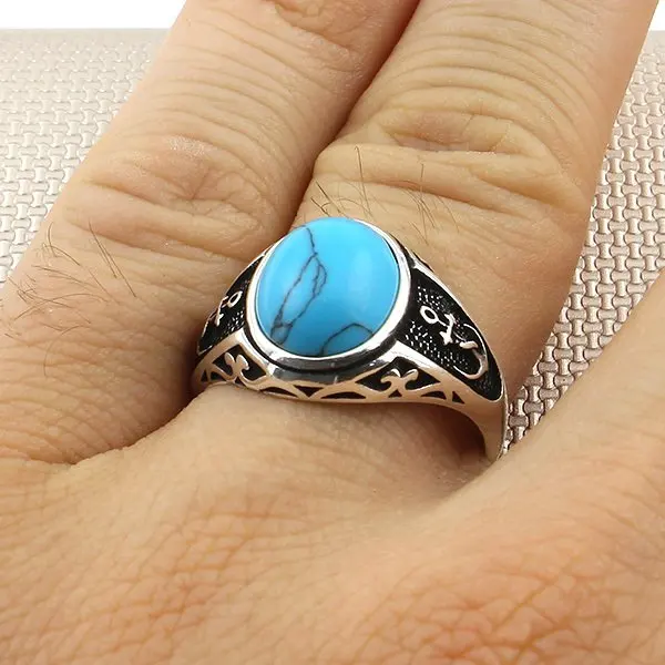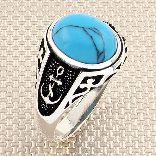 Синий Бирюзовый драгоценный камень ручной работы, мужской Овальный ...