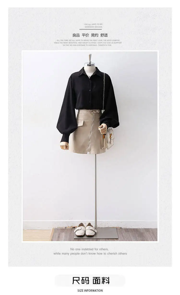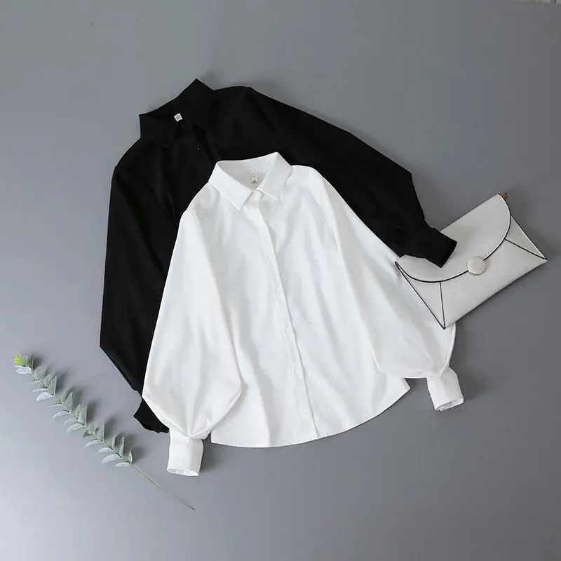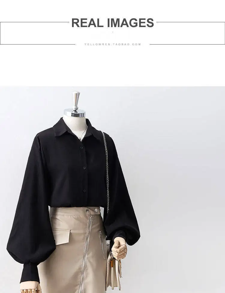 Черная рубашка Женская Ретро блузка с длинным рукавом