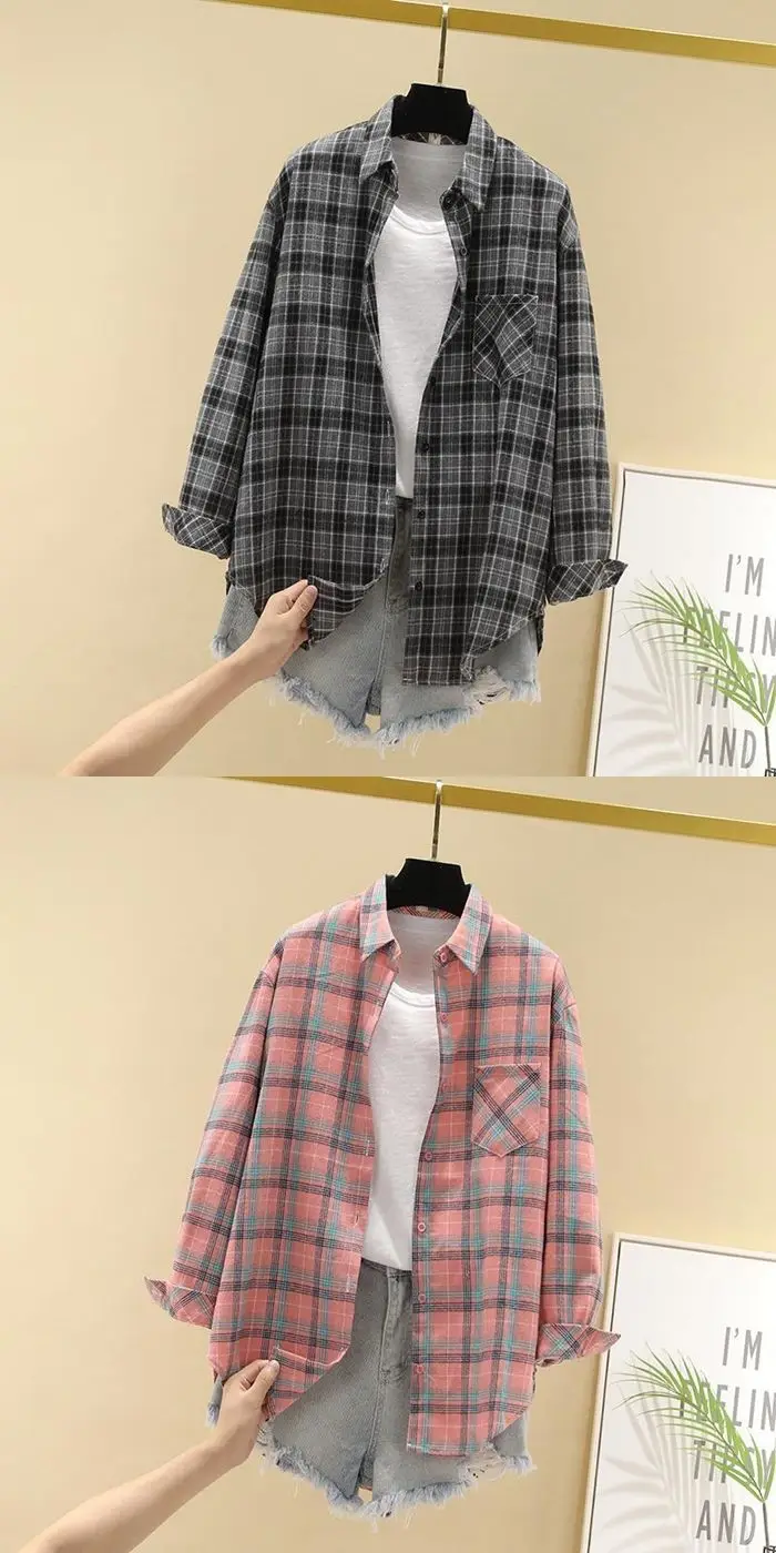 Женская клетчатая рубашка в стиле Харадзюку, модные женские блузки ...
