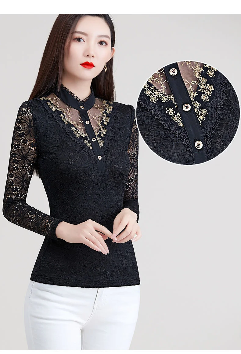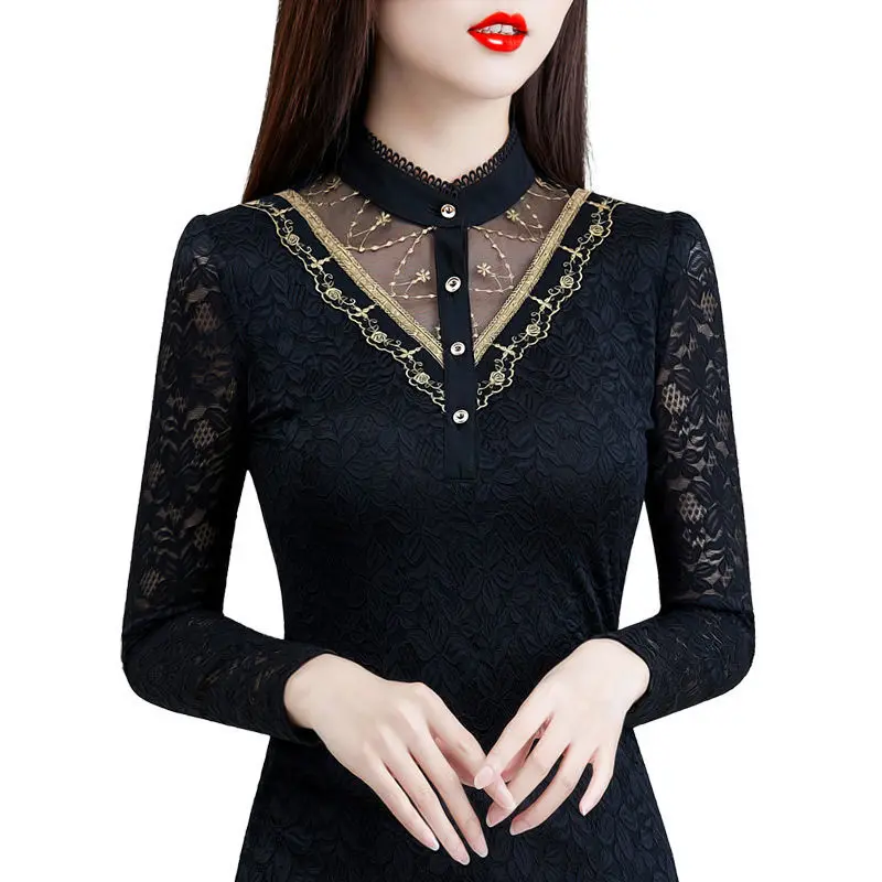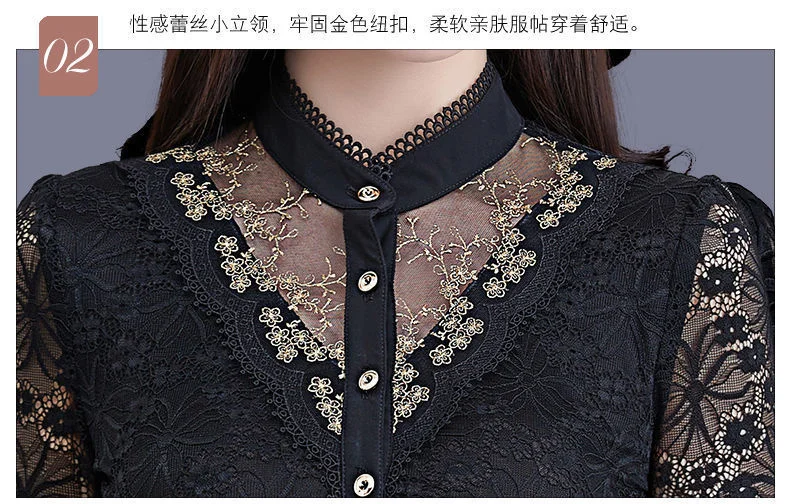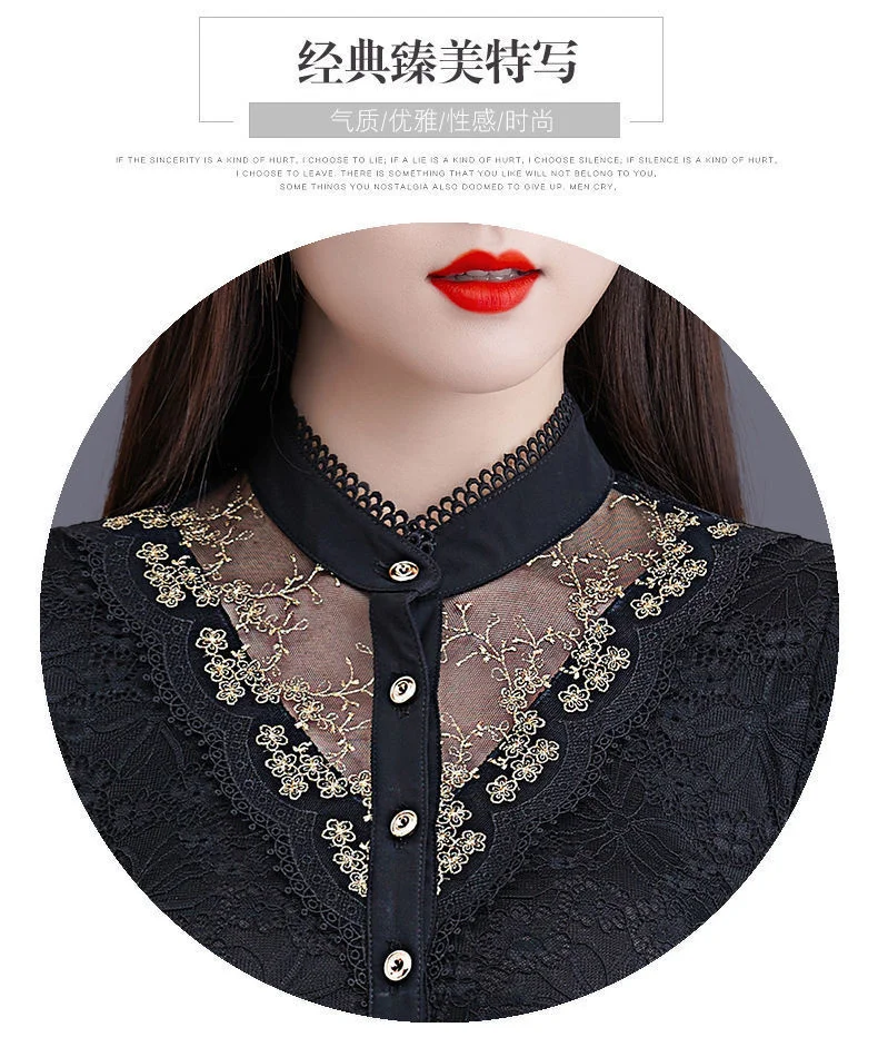 Блузка Для женщин 2020 осеннее кружевное платье с Для женщин топ Для женщин с длинным рукавом и стоячим воротником Blusas Ropa De Mujer; Большие размеры