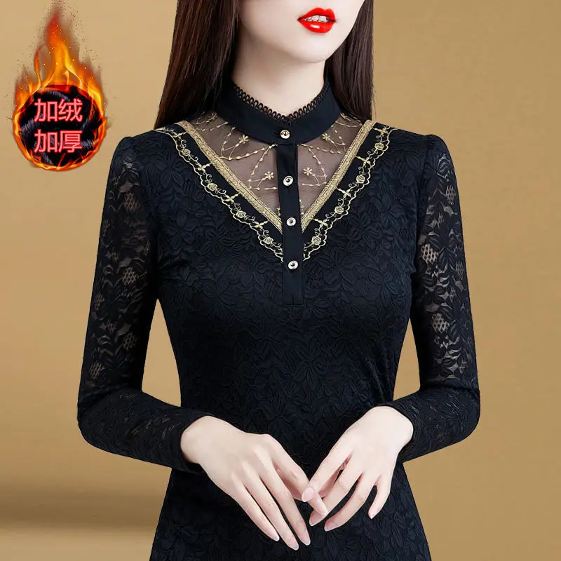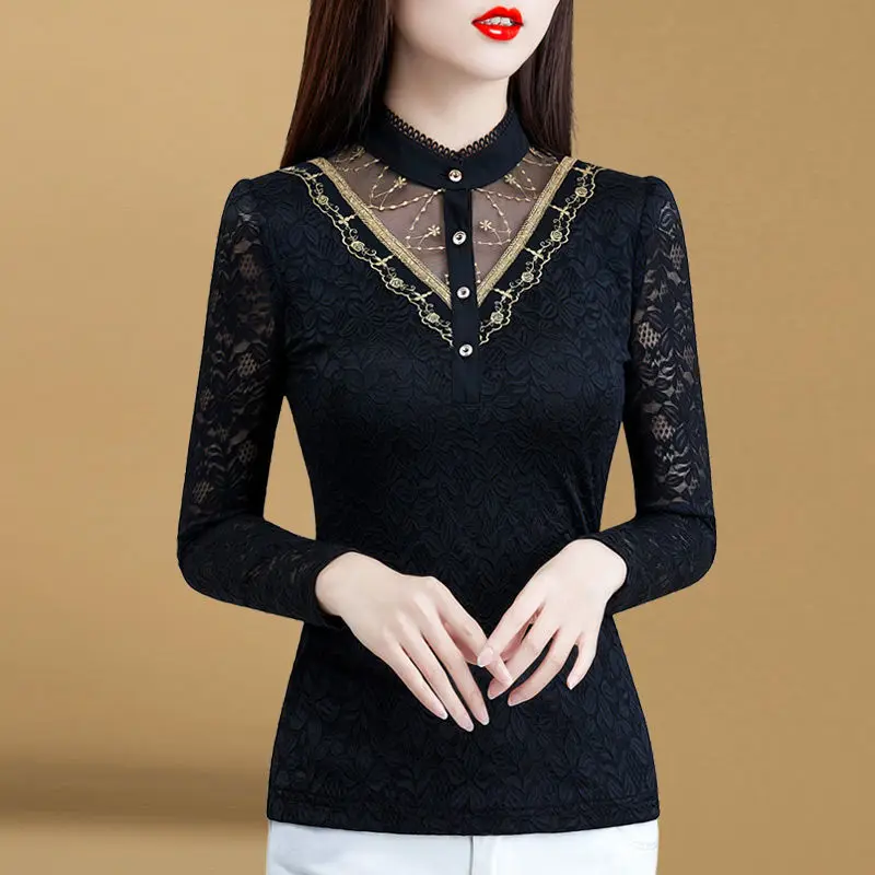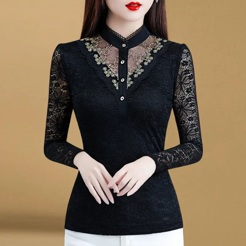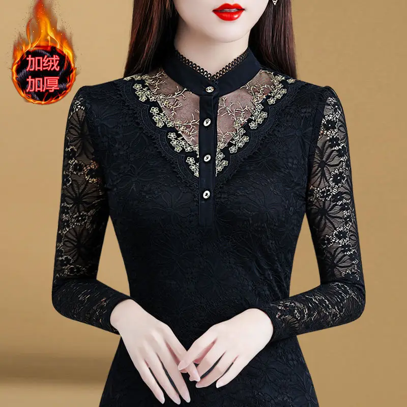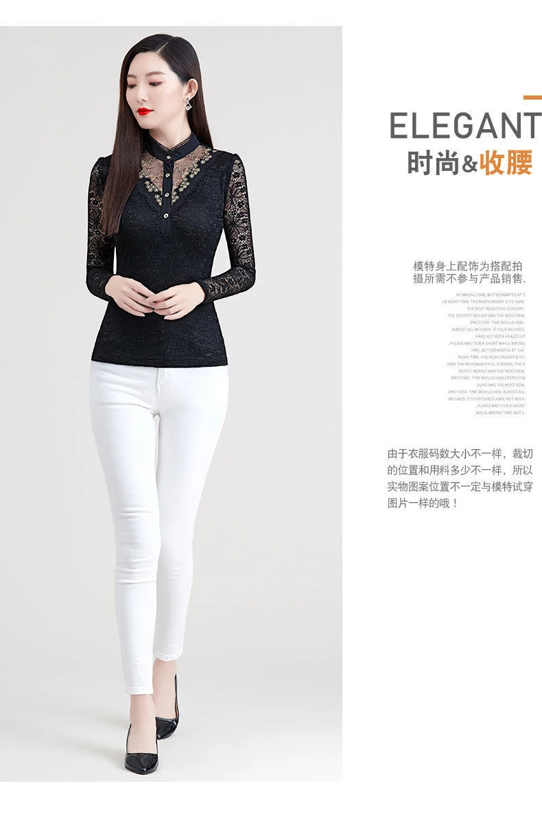 Блузка Для женщин 2020 осеннее кружевное платье с Для женщин топ Для женщин с длинным рукавом и стоячим воротником Blusas Ropa De Mujer; Большие размеры