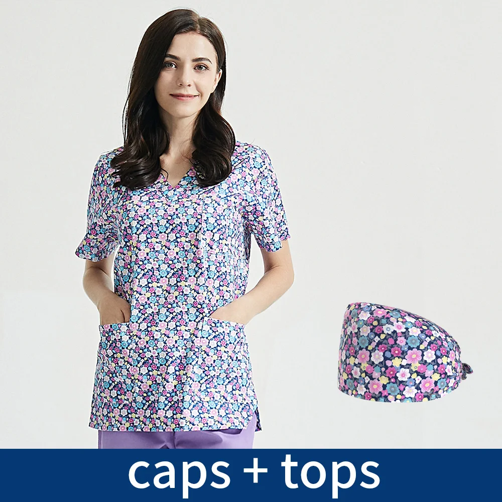 Scrubs tops Cute Cartoon printing Kindergarten teacher workwear pet...