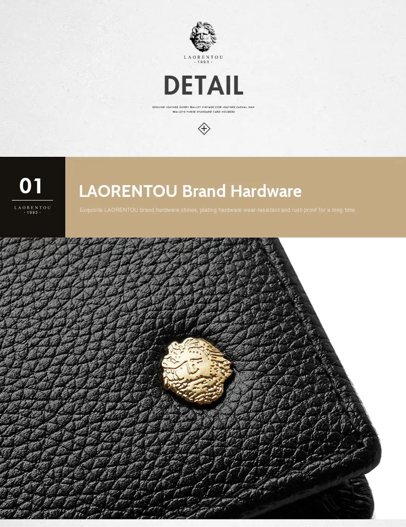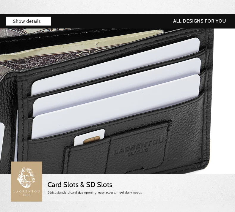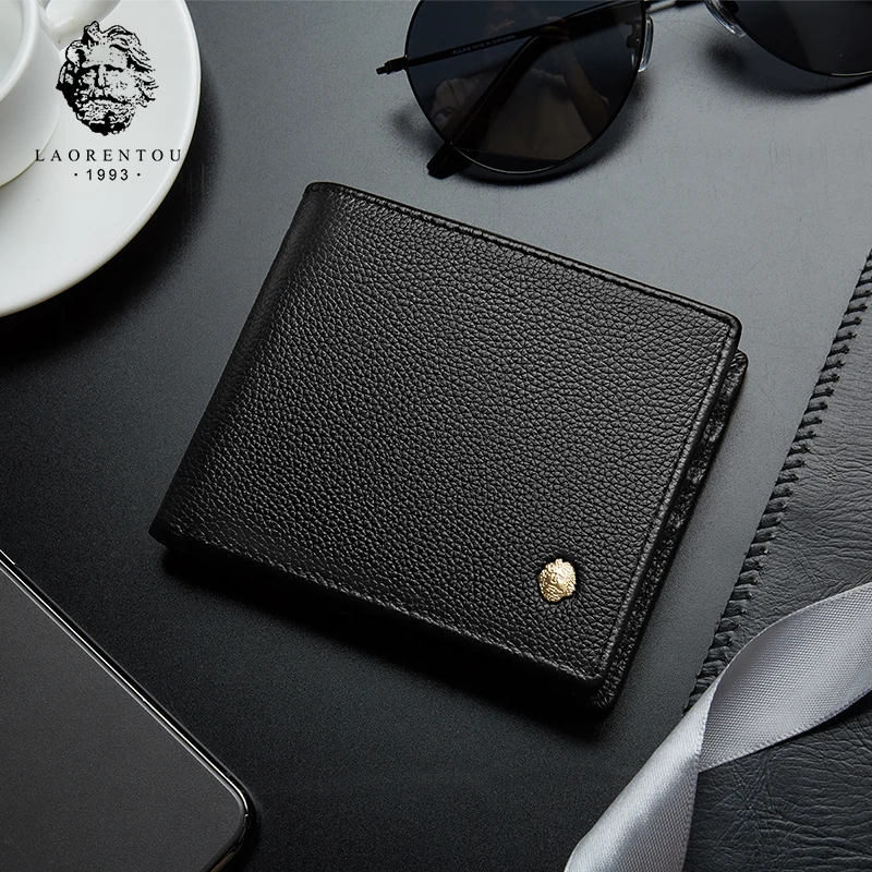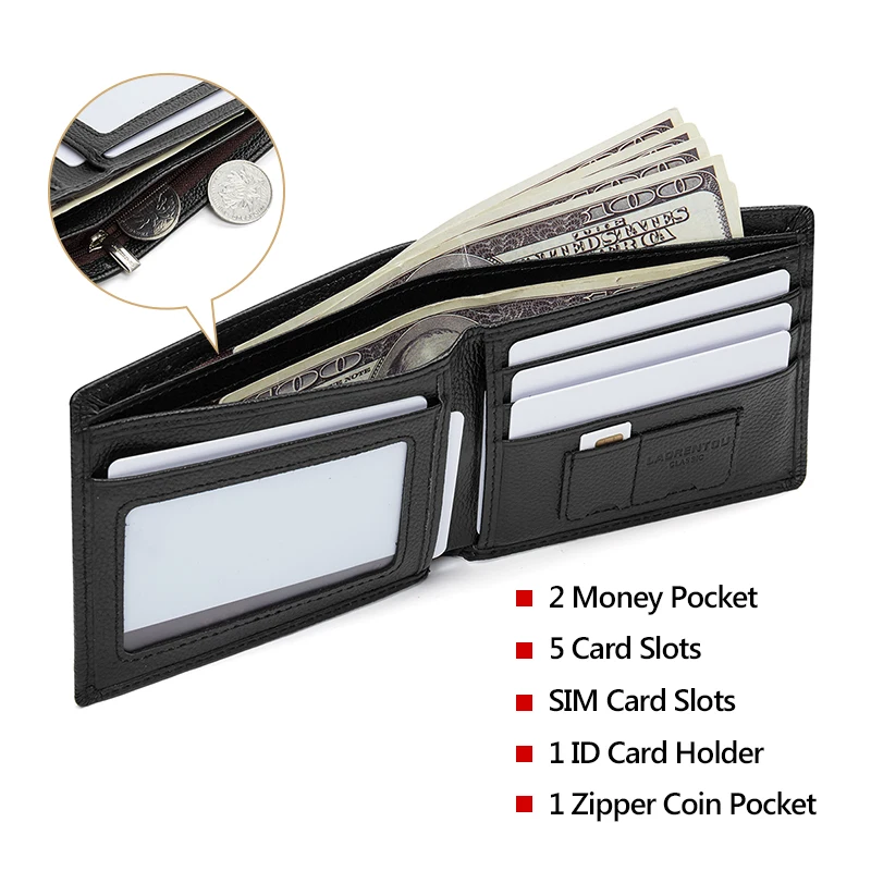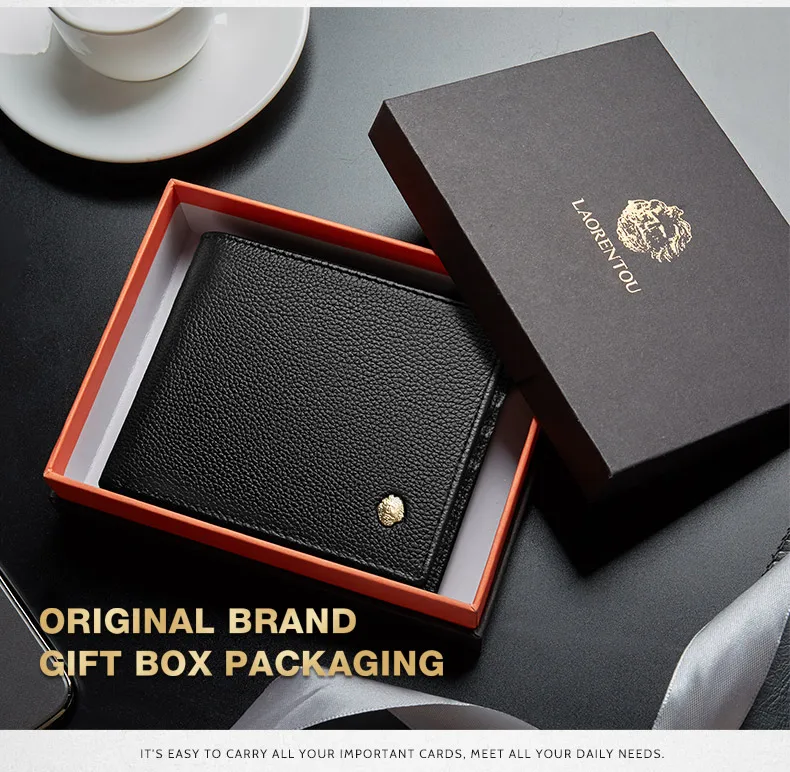 Мужской кошелек для кредитных карт LAORENTOU, Черный Повседневный многофункциональный кошелек из натуральной коровьей кожи, с отделением для монет, 2019