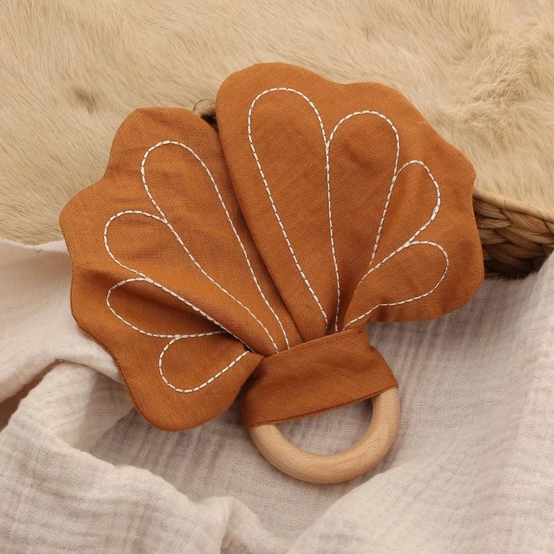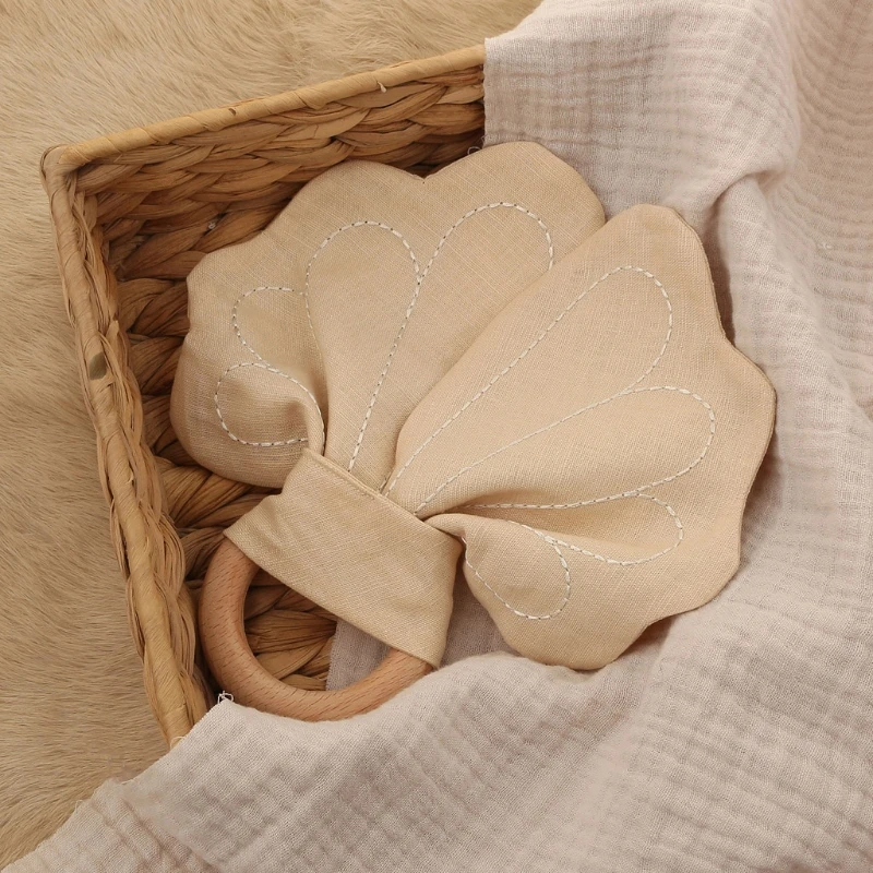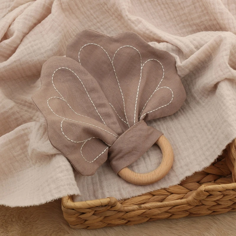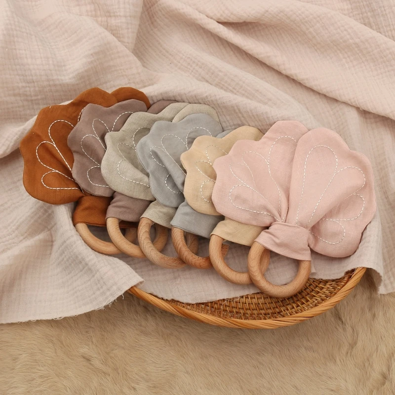 Детский деревянный Прорезыватель для зубов, вышитые цветы, успокаив...