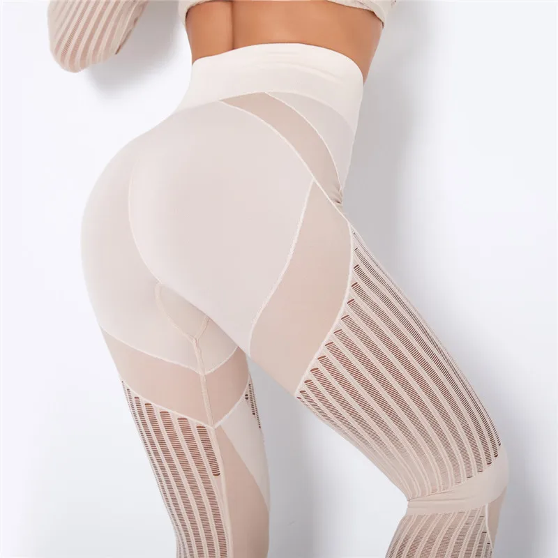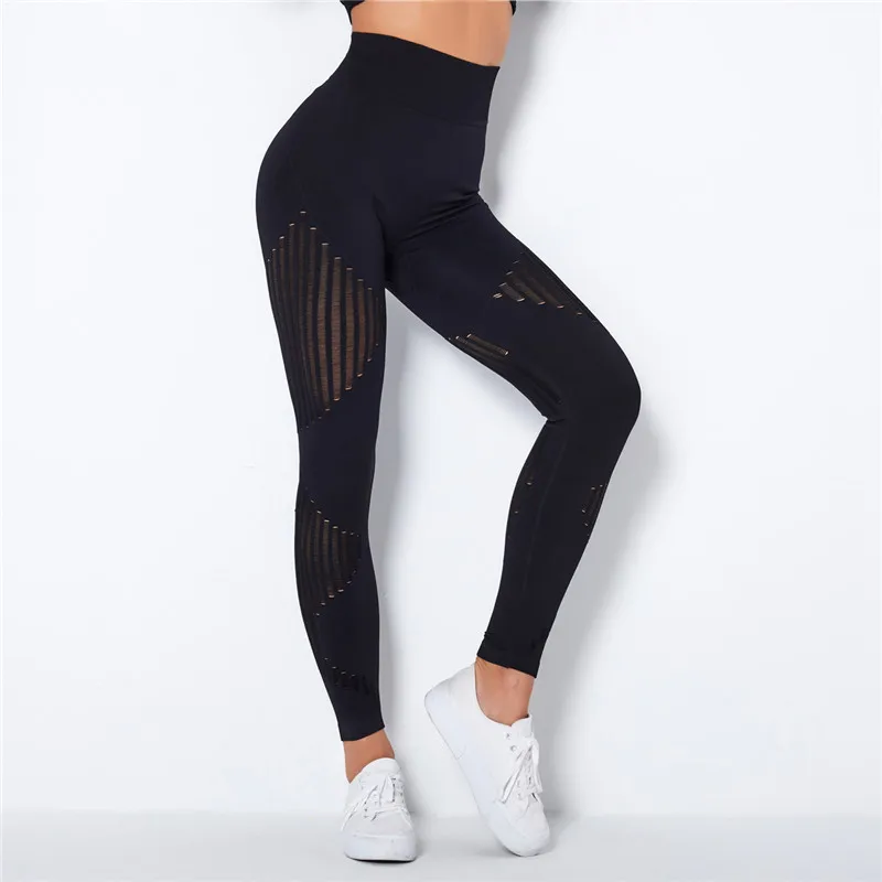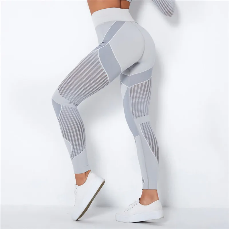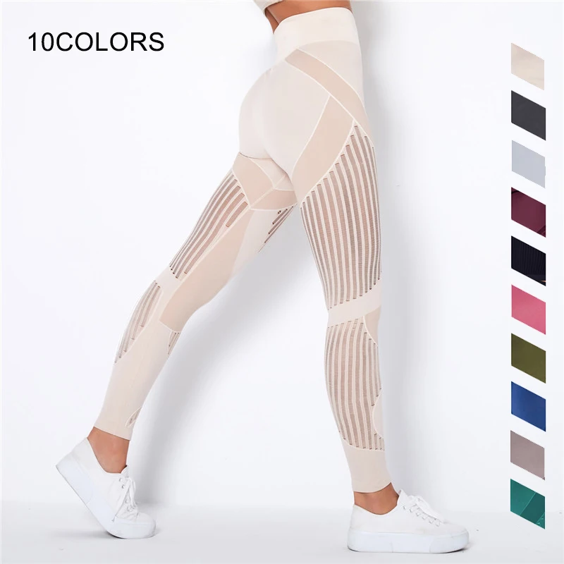 Леггинсы сетчатые женские, 20% спандекс, бесшовные, с высокой талие...