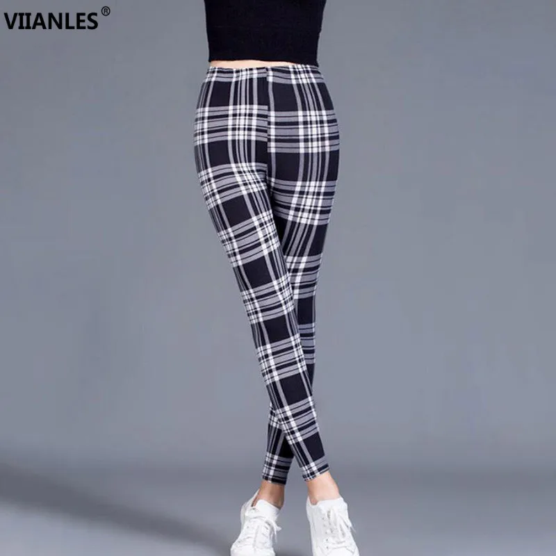 Леггинсы для фитнеса VIIANLES, черные, в клетку, с принтом