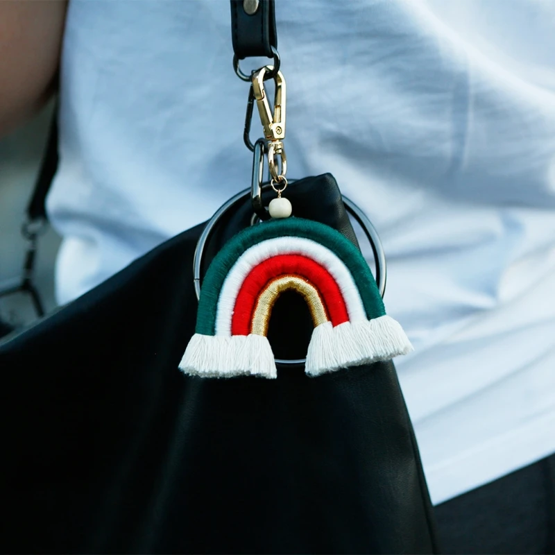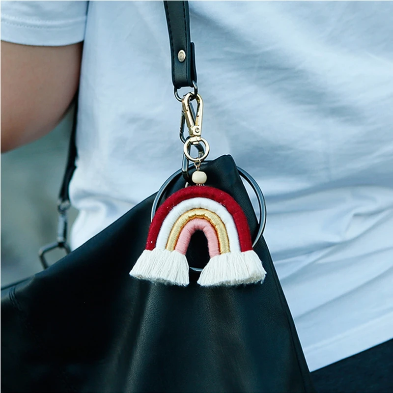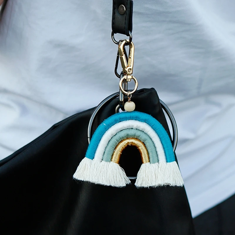 Новый макраме плетения Rainbow, брелки для ключей, для женщин и девочек ручной работы брелок для ключей подвеска для ключей сумок автомобильный подвесной брелок с кольцом подарок
