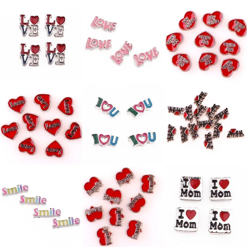 40 шт.лот эмалевая буква Я тебя люблю Плавающие Подвески слова Семья любви подвеска для гостиной стеклянная память медальон ювелирные изделия сделай сам