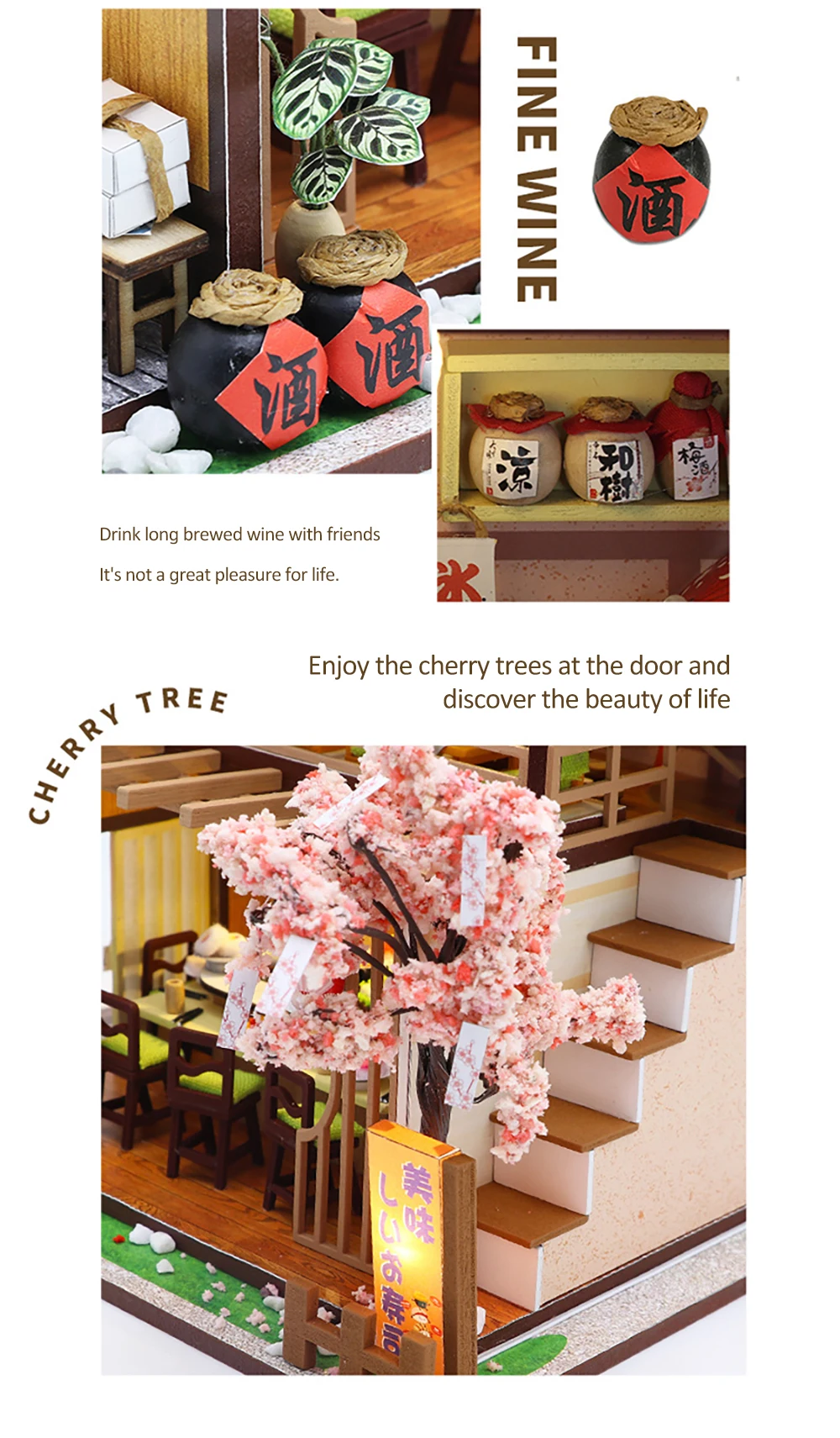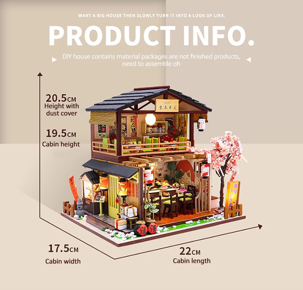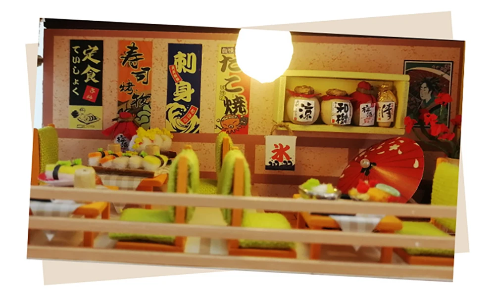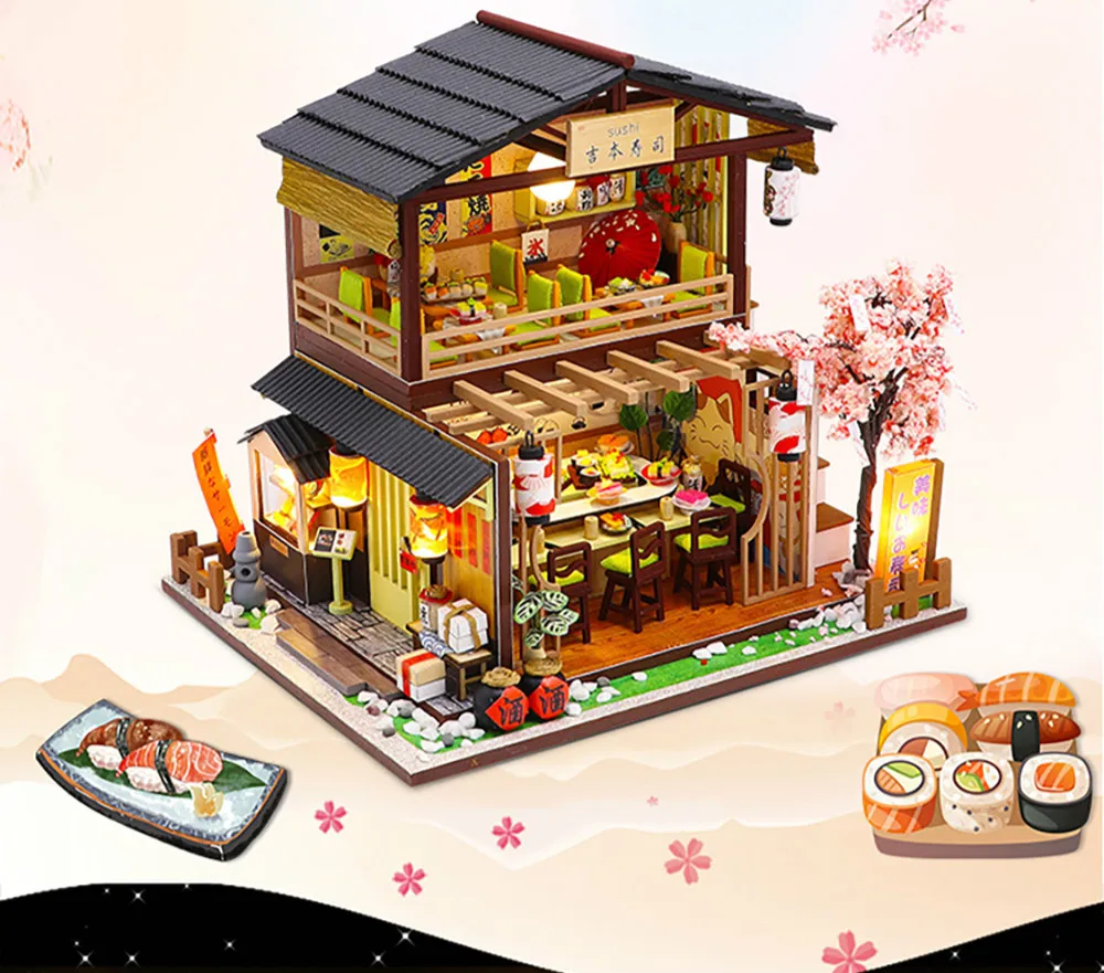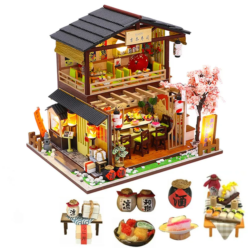 Набор миниатюрный кукольный домик сделай сам, винтажная Модель 3D для сборки японских суши, ресторанов, подарок на день рождения, деревянный большой кукольный домик, мебель