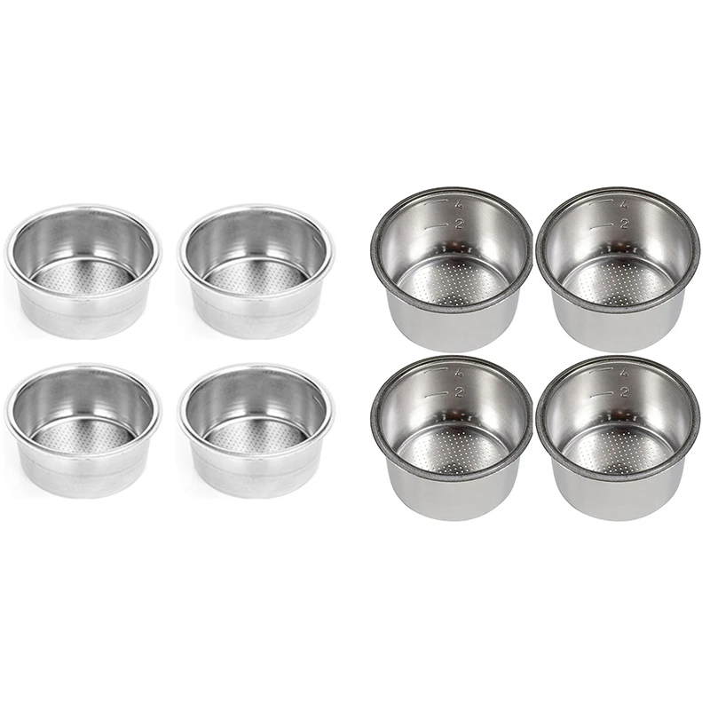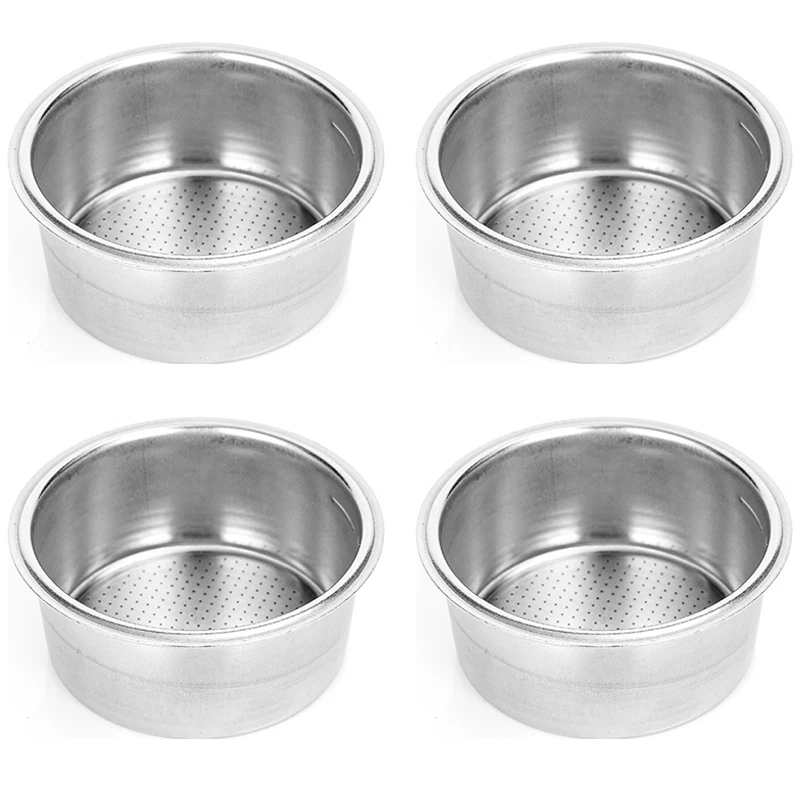 Новая корзина фильтра под давлением для кофеАбсолютно новый и качественныйИзготовлен из нержавеющей стали, прочный в использованииПодходит для: Breville, Delonghi, KrupsЦвет: серебристыйМатериал: нержавеющая стальРазмер: внешний диаметр: 5,8 см; Внутренний диаметр: 5,1 см; Высота: 2,5 см/3,6 смПосылка4 фильтра для кофеВ комплект входит только указанное выше содержимое, другие продукты в комплект не входят.Примечание: светильник вая съемка и различные дисплеи могут привести к тому, что цвет товара на изображении будет немного отличаться от реального. Допустимая погрешность измерения +/- 1-3 см.