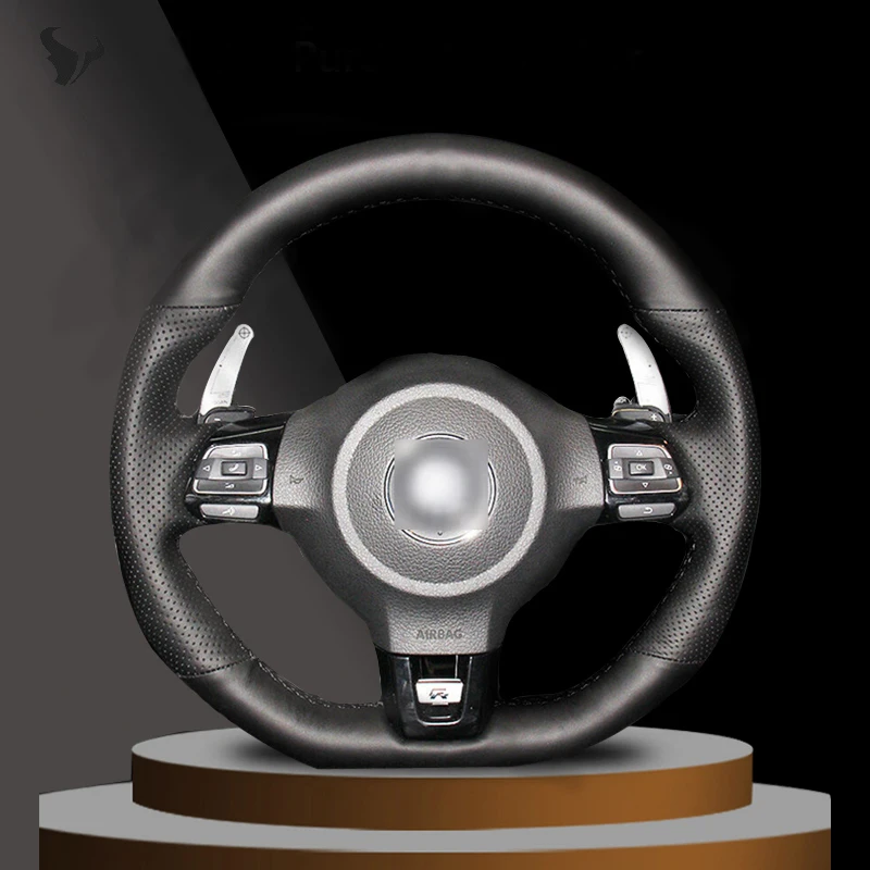 Чехол на руль из искусственной кожи, прошитый вручную, черный, для Volkswagen Golf 6 GTI MK6 VW Polo GTI Scirocco R Passat CC