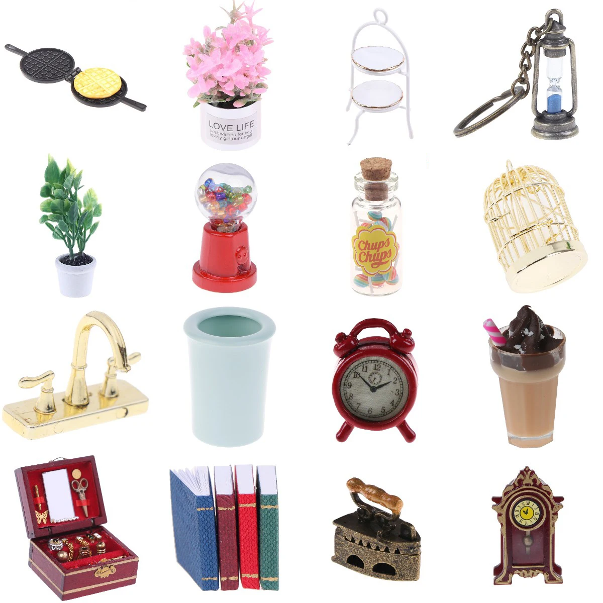 Lollipops Комната Железный холодильник брелок-ножницы зеленый горшок клетка для птиц мусорное ведро конфеты бутылка молоко чай часыДля декора кукольного домика