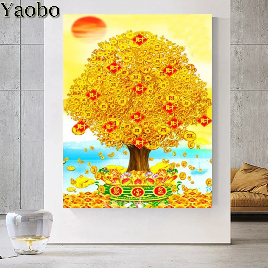 Алмазная вышивка с изображением золота денег дерева солнца 5D алмазная живопись Набор для вышивки крестиком Стразы стены домашний декор