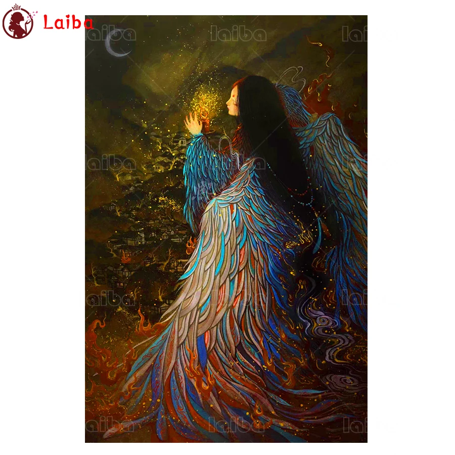 5d фото круглая алмазная живопись фантазия искусство, ангел, крылья полная дрель квадратная мозаика домашний декор Ручная вышивка подарок