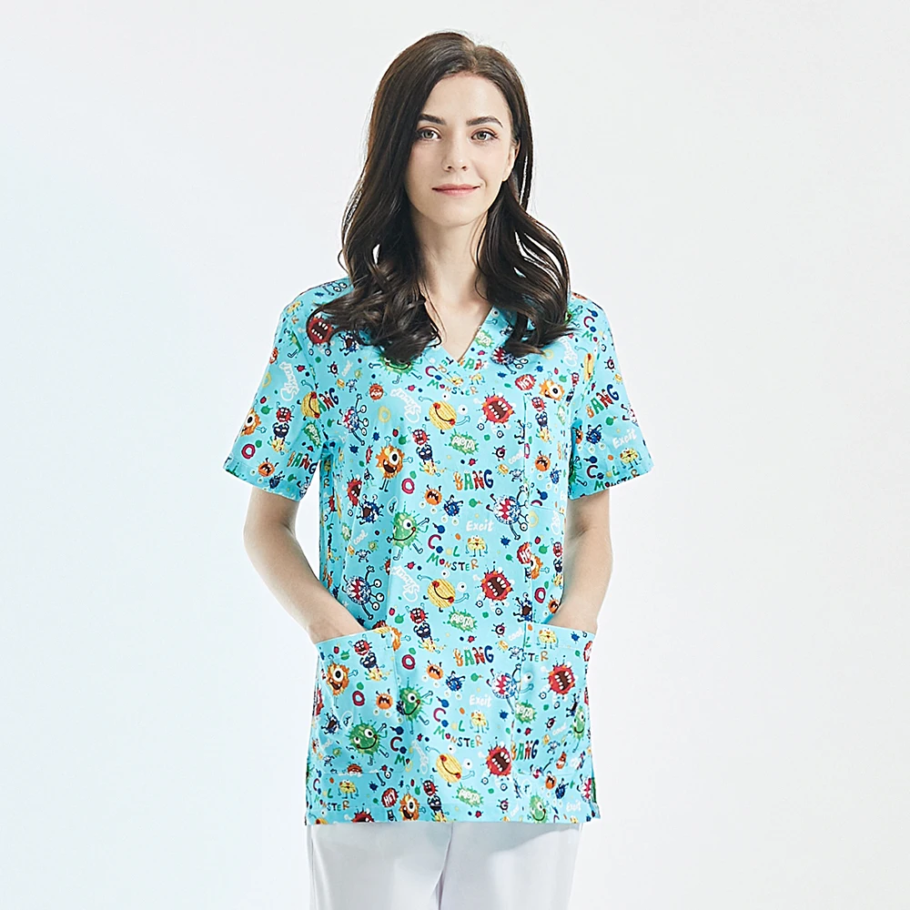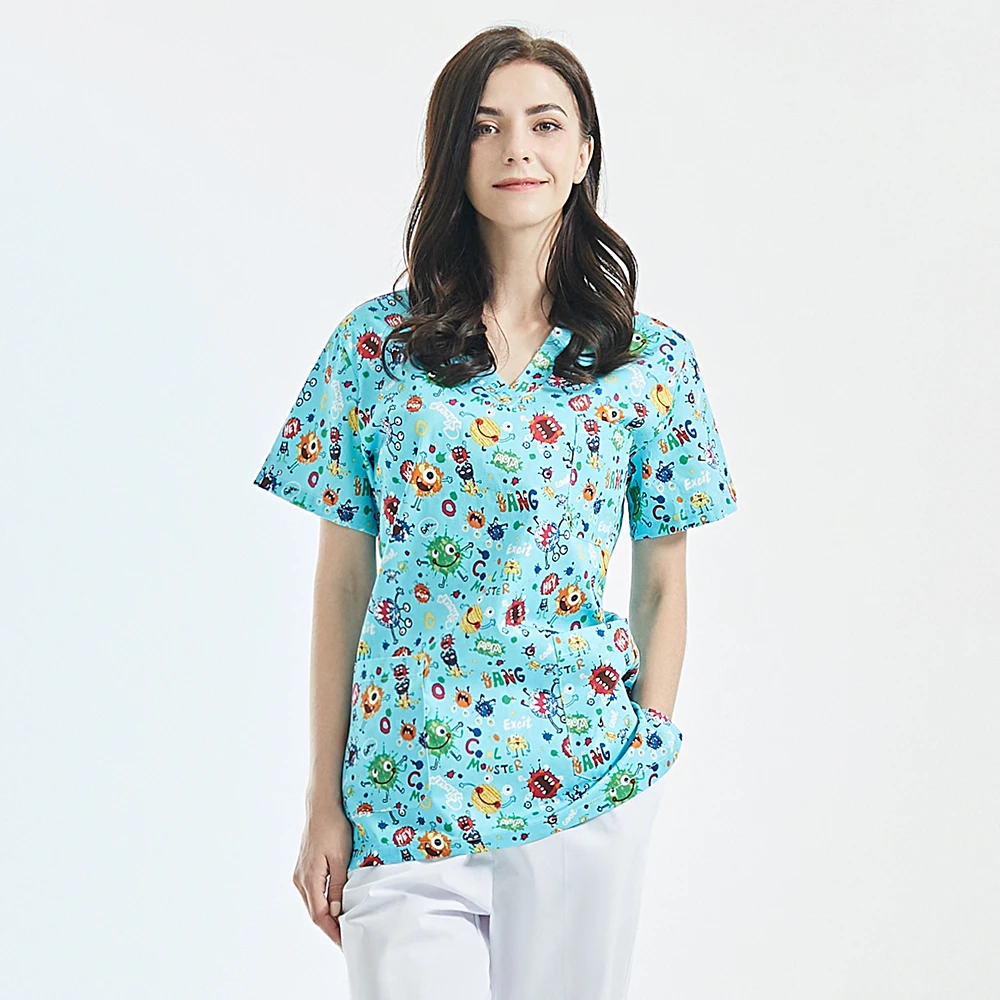 2021 Рабочая Униформа для женщин с мультяшным принтом медсестры бол...