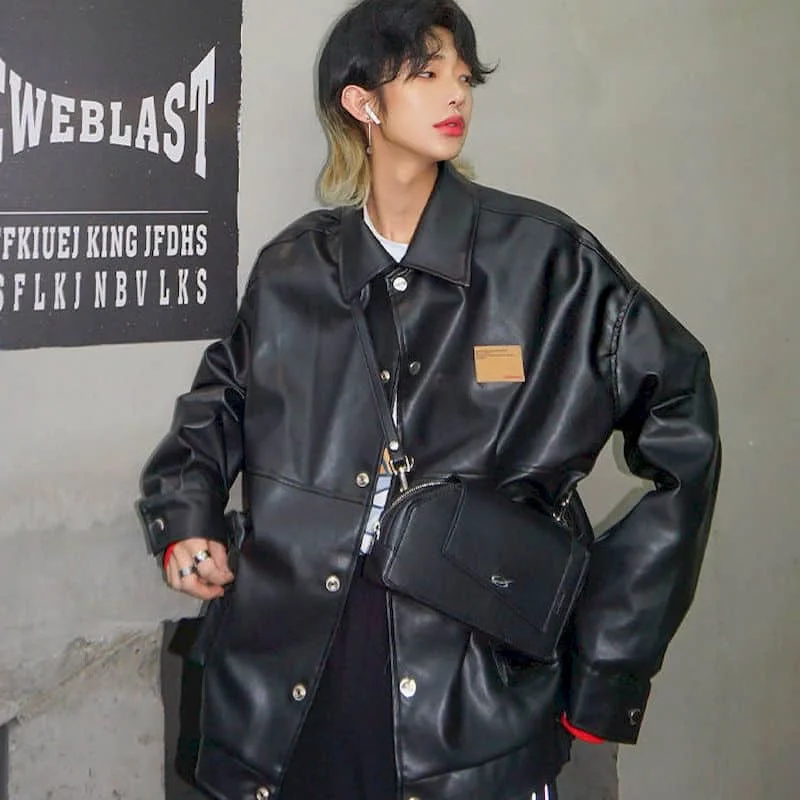 Мужской кожаный мотоциклетный костюм-пиджак, Новинка весна-осень 2022, модный красивый свободный мягкий зимний женский пиджак в Корейском стиле