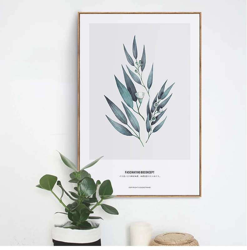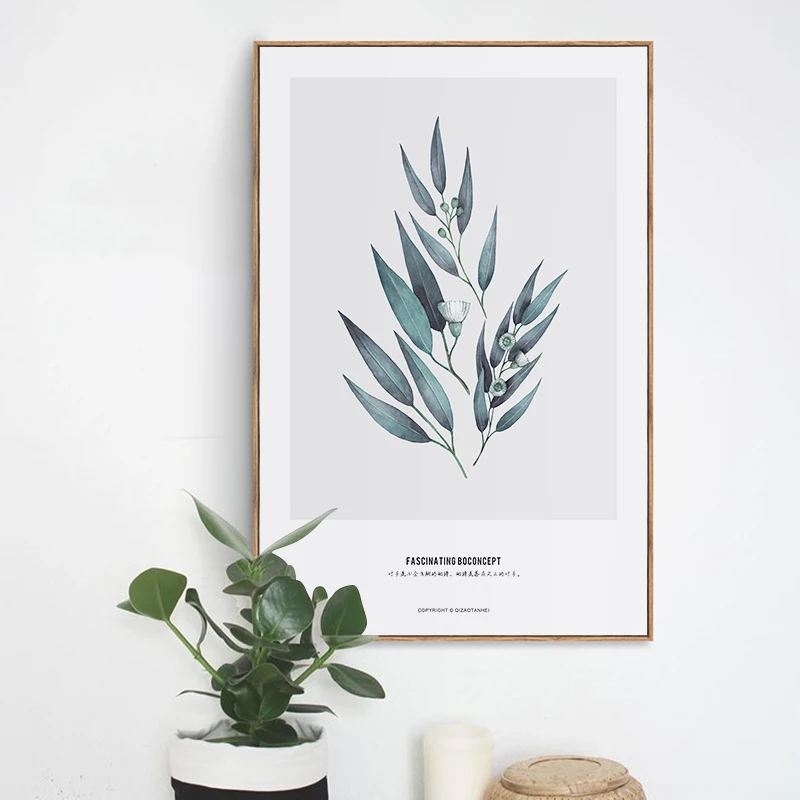 Постеры на холсте с зелеными листьями растений, принты в скандинавс...