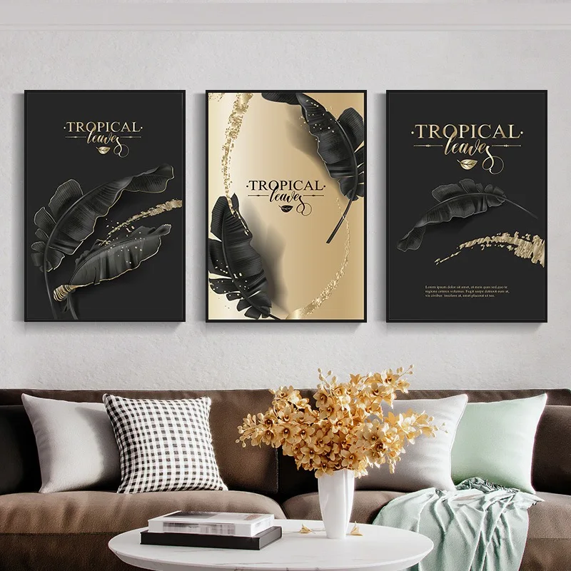 Абстрактный настенный плакат с изображением ЧЕРНЫХ ЛИСТЬЕВ, растений, современный минималистский стиль, холст, печать, коридор, искусство, гостиная, диван, украшение мебели