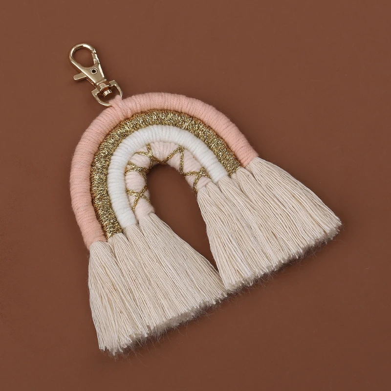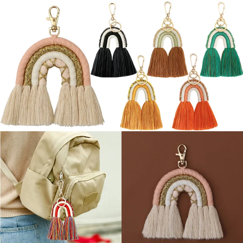 Новый ткачество макраме Радуга, брелки для ключей, для женщин и девочек Boho ручной работы брелок для ключей подвеска для ключей сумок подвеска брелок для автомобиля подвесной подарок