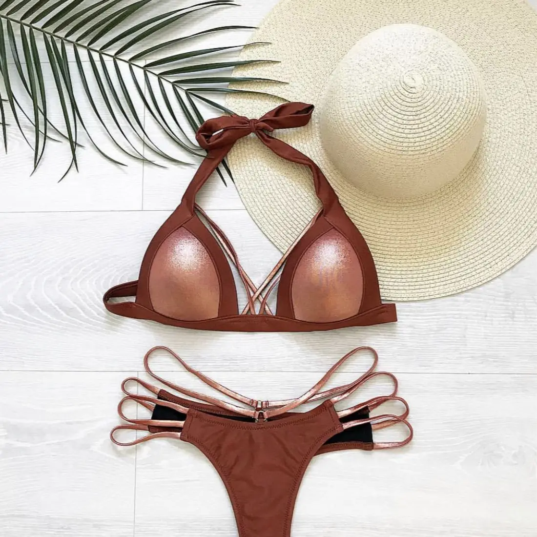 2020 горячего тиснения купальник бикини мозаика пикантные женские Разделение купальник сексуальный купальный костюм для женщин Для женщин Женский комплект 2 шт. Для женщин