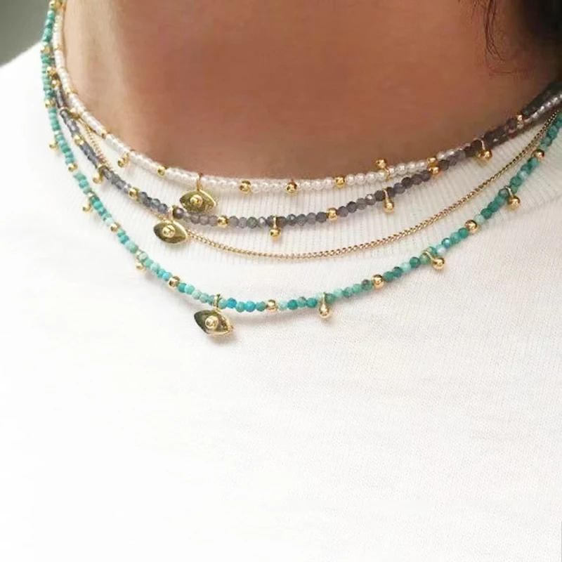 Ожерелье женское, с подвеской в виде глаза, золотого цвета, украшенное бисером, на новый год