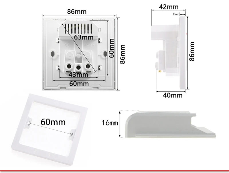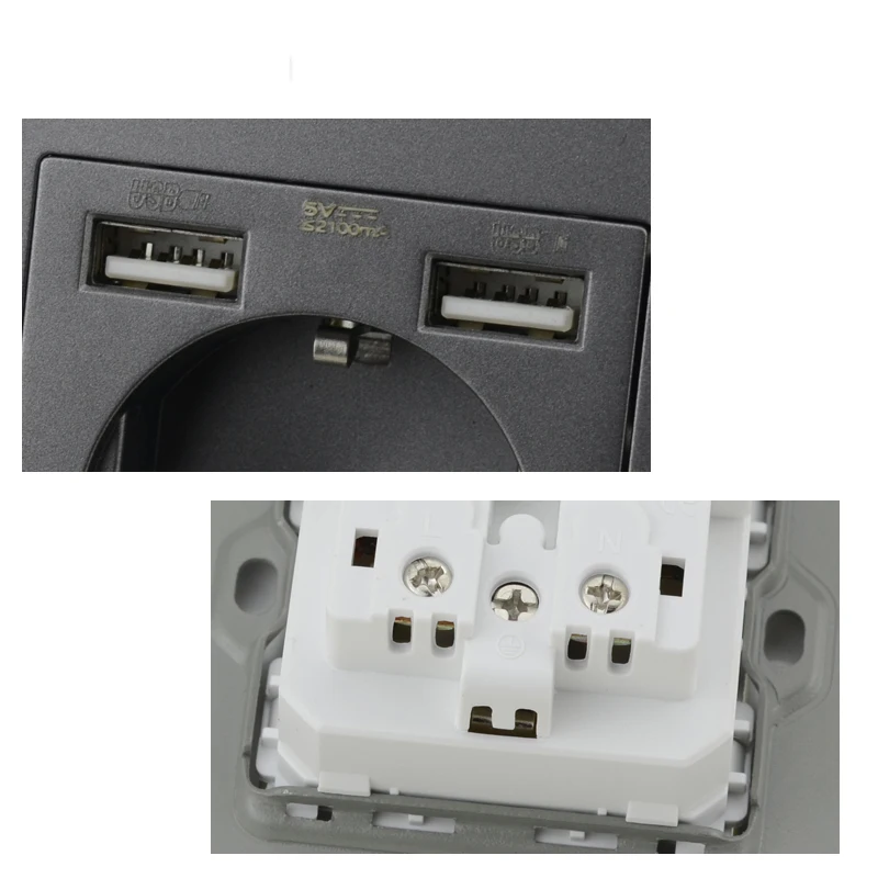 1. С 2 USB-портами.2. Выход USB: всего 5 в 2 А.3. Вход: 100 ~ 240 В 50/60 Гц4. Номинальное напряжение (s): 250 В переменного тока/50 Гц5. Номинальный ток: 16А6. Положение для заземления: с заземляющим контактом7. Степень защиты от поражения электрическим током: с повышенной защитой8. Тип клемм: винтового типа9. Наличие затвора: с10. Количество полюсов: 2P + E11. Размеры: 86 мм x 86 мм x 40 мм