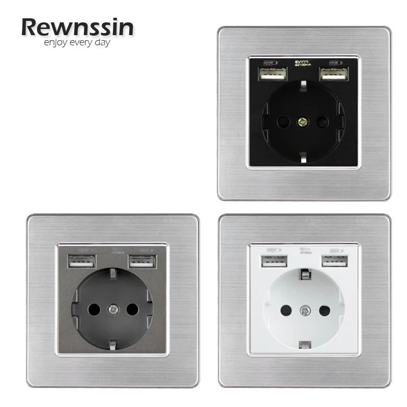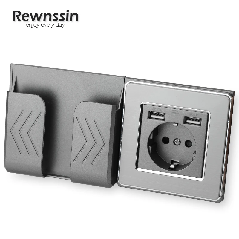 Европейскаяфранцузская розетка с двумя USB-портами для зарядки, Настенная USB-розетка для мобильного телефона 110-250 В, 16 А, серая панель из нержавеющей стали