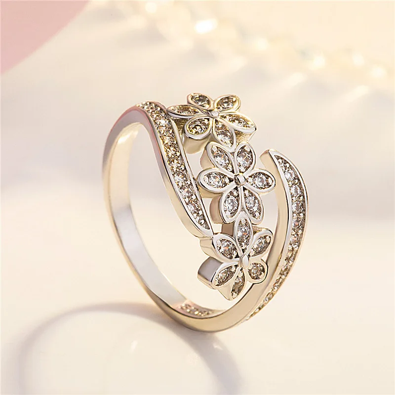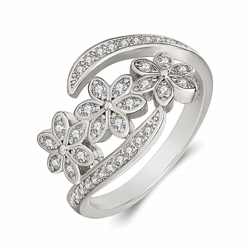Женское кольцо с кристаллами, серебристое медное кольцо с цветами, ювелирные изделия 2020, свадебные аксессуары, оптовая продажа