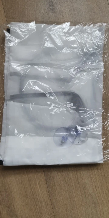 Он отлично выполняет свою функцию. Это очень простая, но достаточная ткань для выполнения своей функции. Присоски были деформированы из-за упаковки и не были присосканы, но когда я положил их пару раз на стекло, они восстановили свою первоначальную форму и работали.