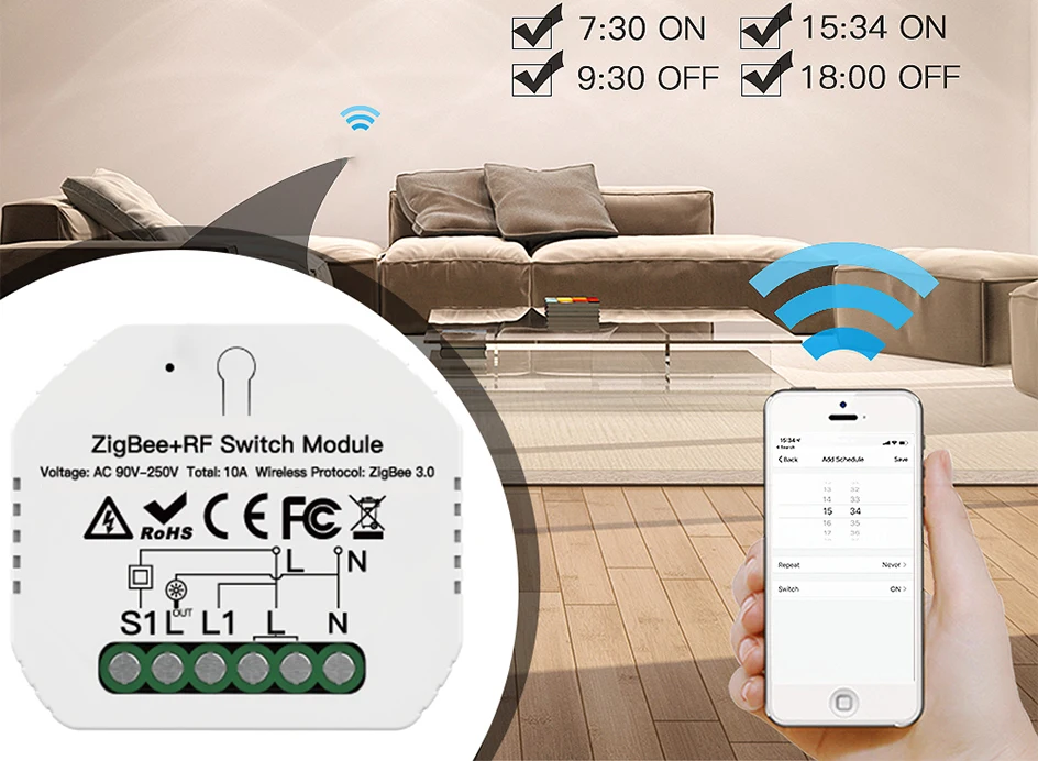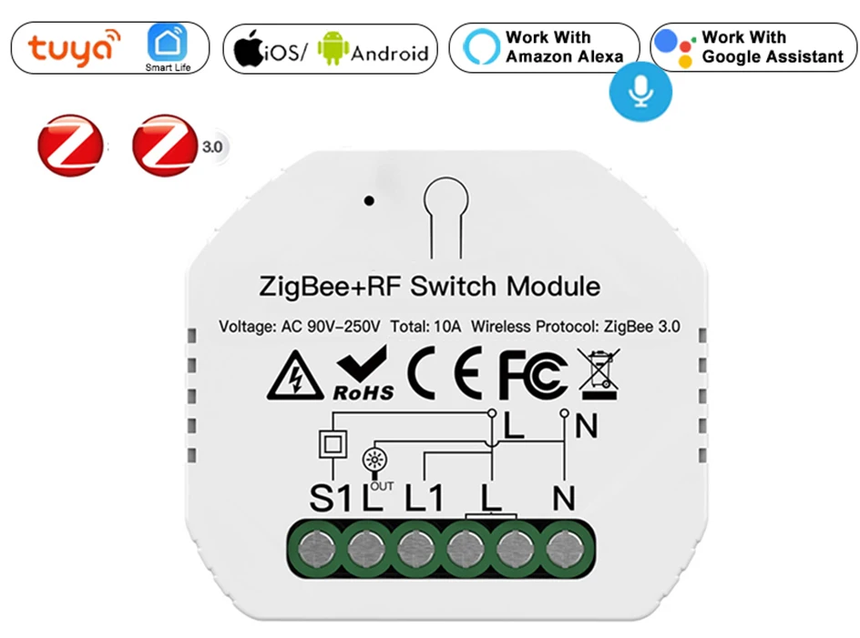 3. Обеспечивает голосовое и Беспроводное дистанционное управление без помощи рук; Поддерживает Голосовое управление Amazon Alexa Google Home и дистанционное управление приложением Smart Life/ Tuya на смартфонах со специальным концентратором Tuya ZigBee 3,0, необходимым и подключенным. 4. Учитывая состояние нестабильной сети или отсутствие сети, модуль коммутатора ZigBee 3,0 действительно является незаменимым элементом в сочетании со шлюзом ZigBee для формирования домашней локальной сети, больше не беспокойтесь о том, что нет и слабая сеть, легко получить управление через подключенные устройства при наличии стабильного сигнала ZigBee; Позволяет подключать больше устройств по ZigBee, чем по Wi-Fi протоколу, специально поддерживается этот модуль переключателя Zigbee 5. Возьмите полный контроль над подключенными устройствами с таймерами, расписаниями и обратным отсчетом (5/30 минут, 1 час и т. д.) с помощью приложения Smart Life / Tuya; Поделитесь контролем с семьей и друзьями для дополнительного удобства