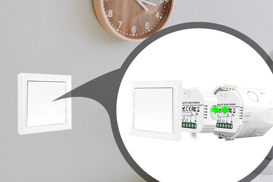 Характеристики продукта: 1. Этот умный модуль Tuya ZigBee 3,0 специально разработан с протоколом ZigBee 3,0, совместим с hub Tuya ZigBee (также поддерживает умные устройства) для реализации всей связи вашего дома, действительно хорошая замена нестабильному Wi-Fi. Протокол ZigBee 3,0 с мини-дизайном подходит для коробки ЕС/настенный переключатель стандарта Великобритании и легко спрятать его в скрытую настенную коробку, чтобы сделать ее умной, предоставление вашим устройствам максимального включения/выключения интеллектуального преобразования и преобразования большинства совместимых продуктов в интеллектуальные; Традиционный переключатель и этот умный модуль могут работать независимо без помех. (Примечание: Этот модуль подходит только для переключателя, подробности см. На рисунке 2.) 2. Может использоваться как 1-Сторонняя или 2-сторонняя цепь (2 переключателя управляют светильник том); просто подключите к 1 из 2 переключателей и преобразуйте подключенное устройство в Интеллектуальное (для 2-сторонней цепи)