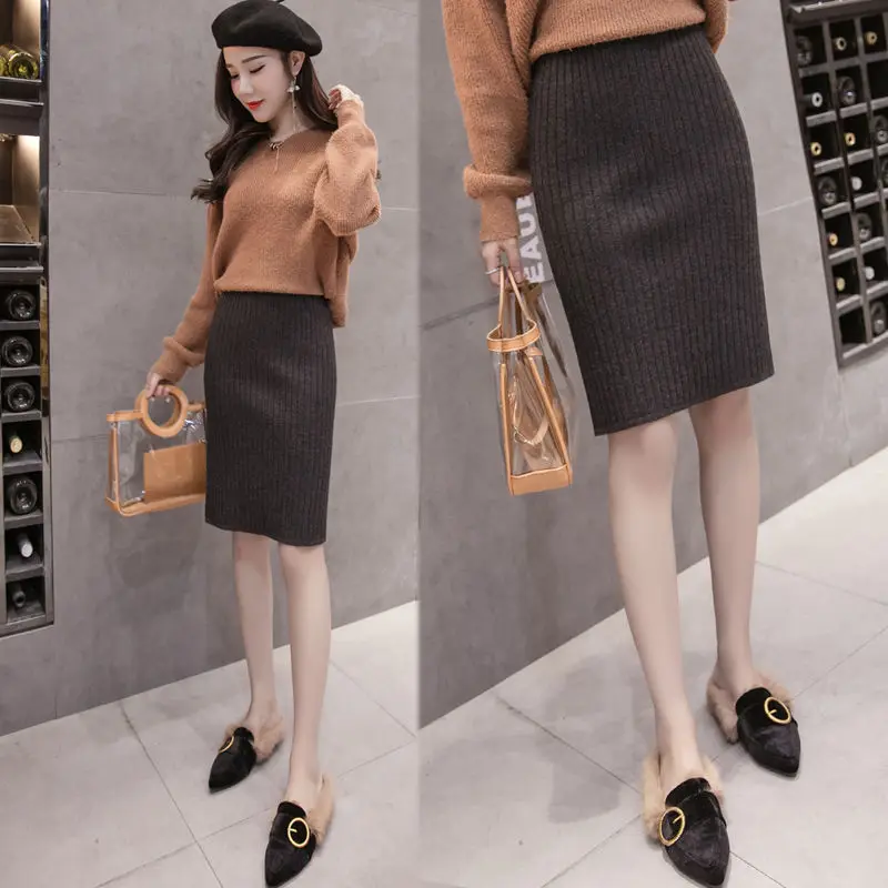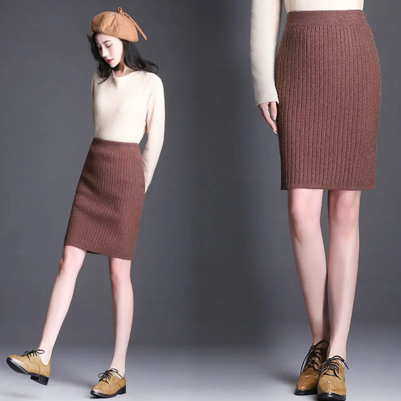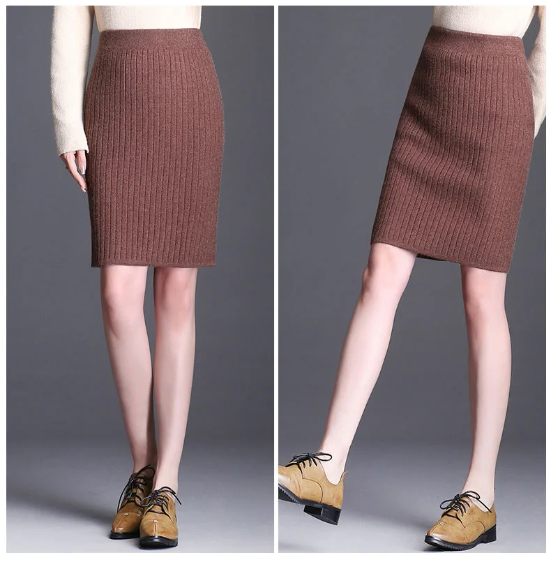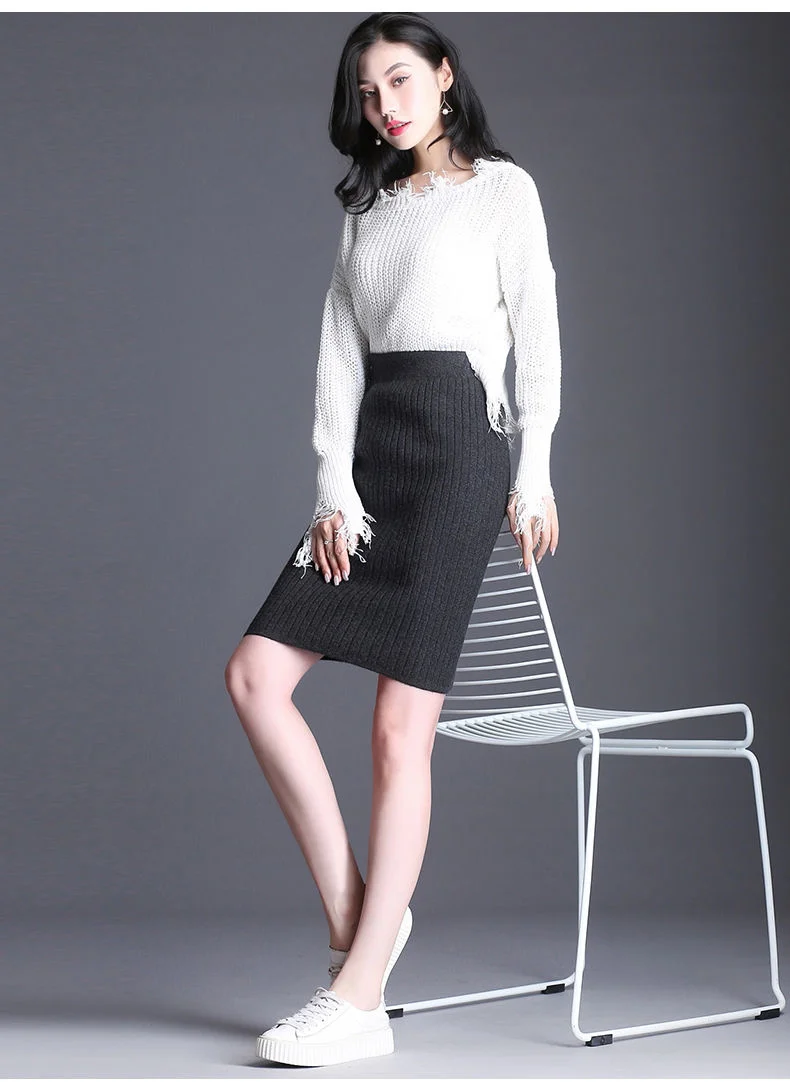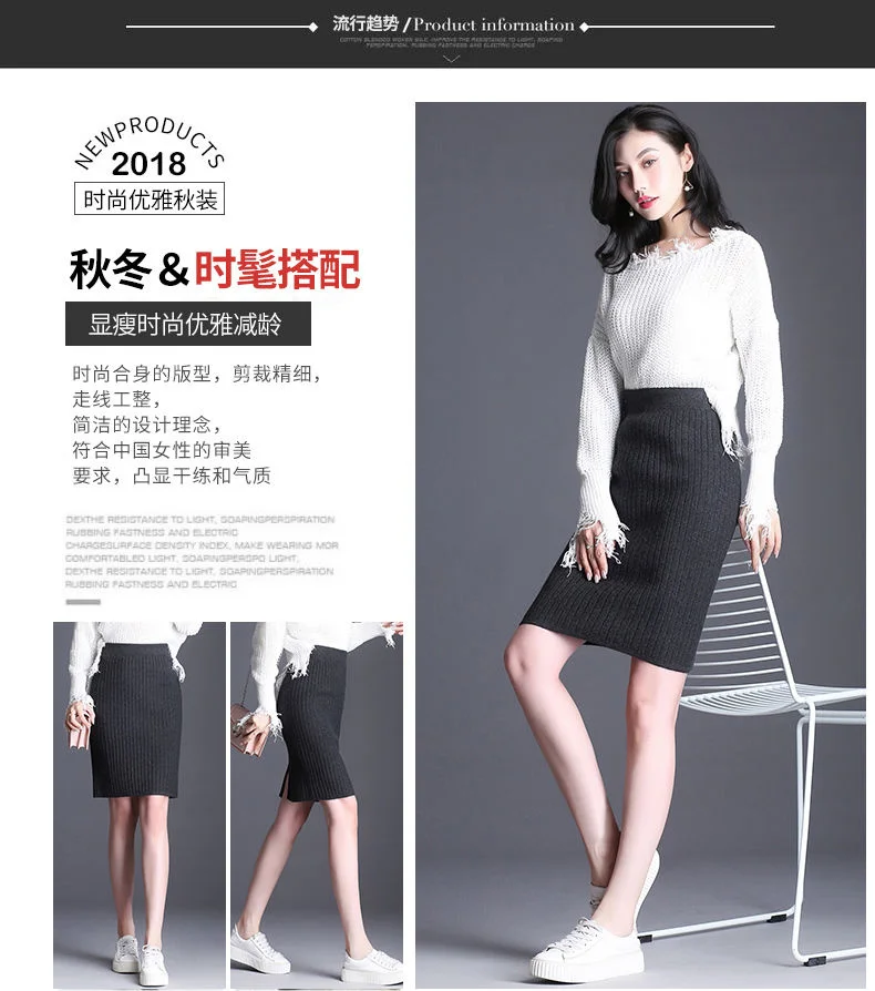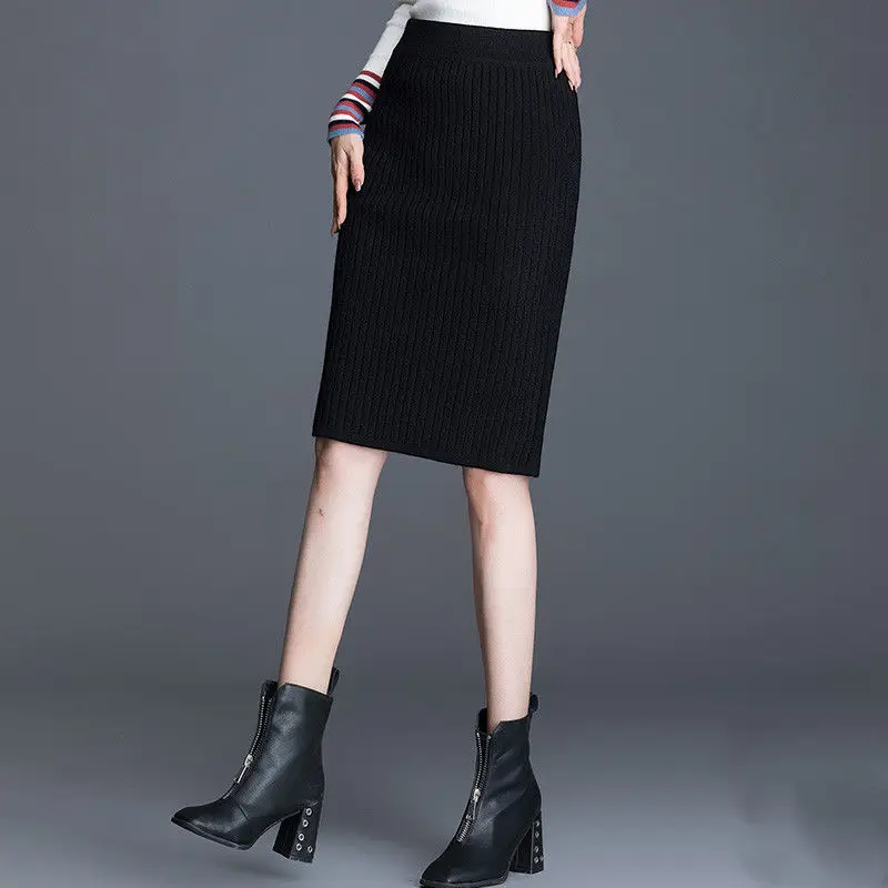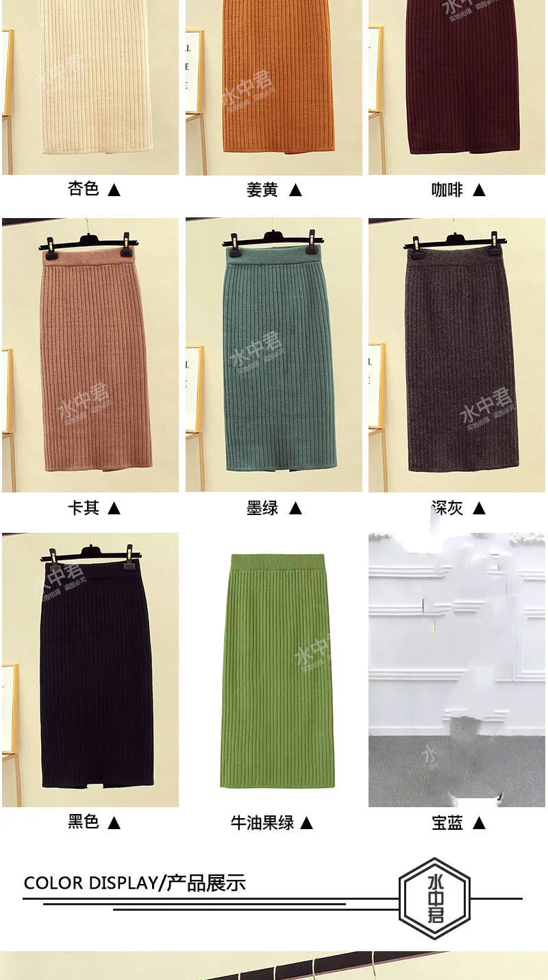 Женская трикотажная шерстяная юбка, трапециевидная юбка с высокой талией и разрезом, 2020