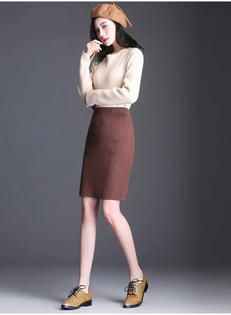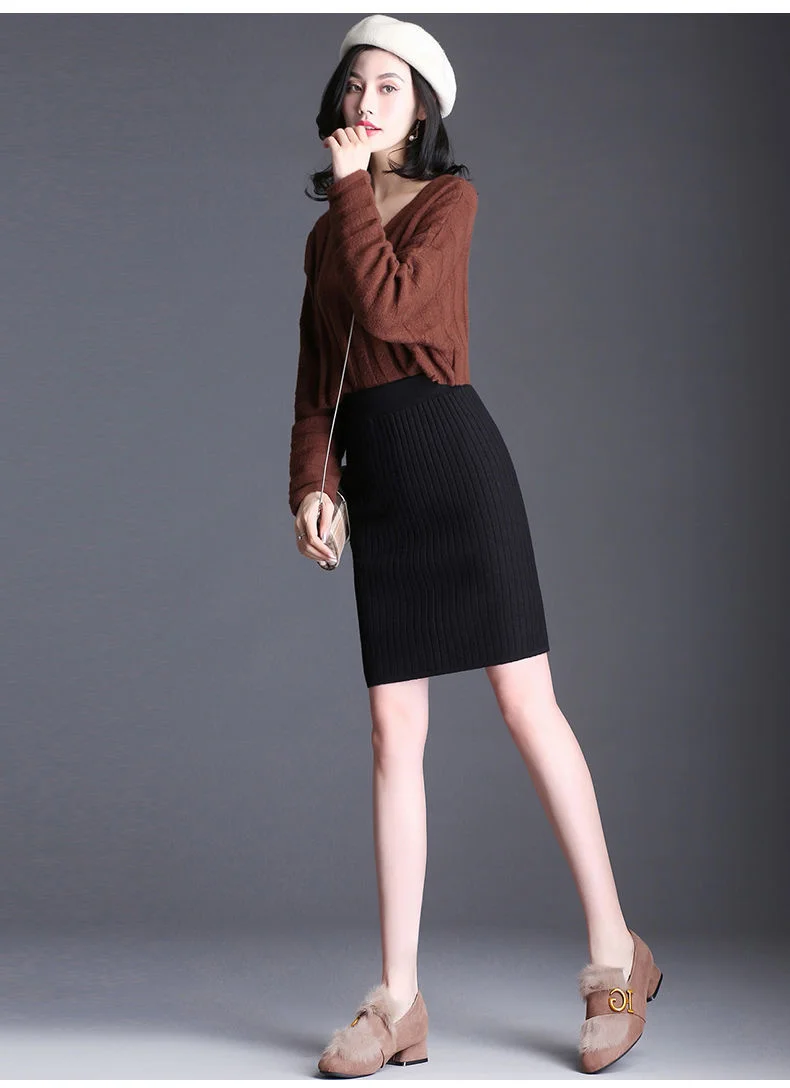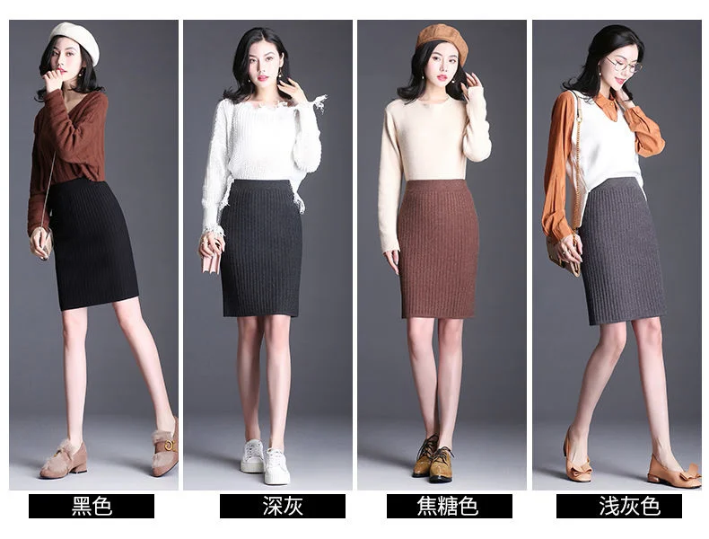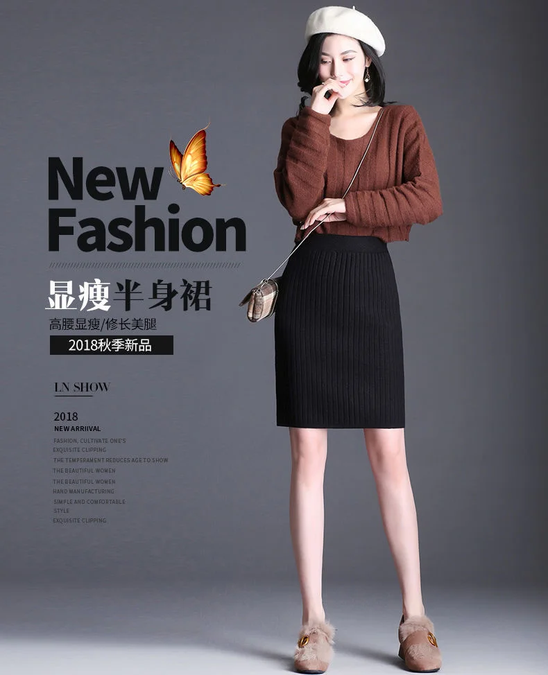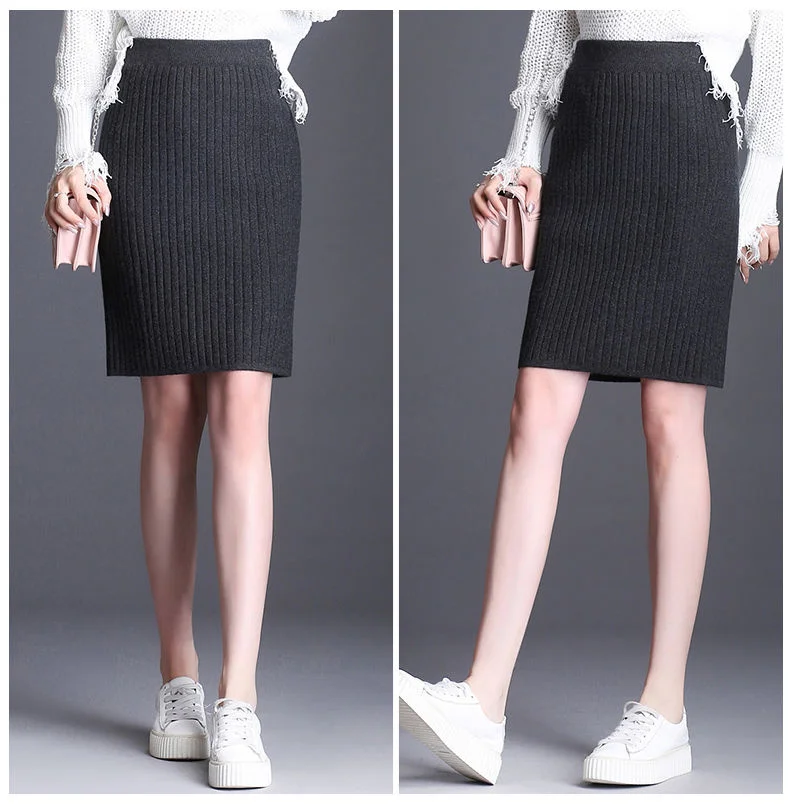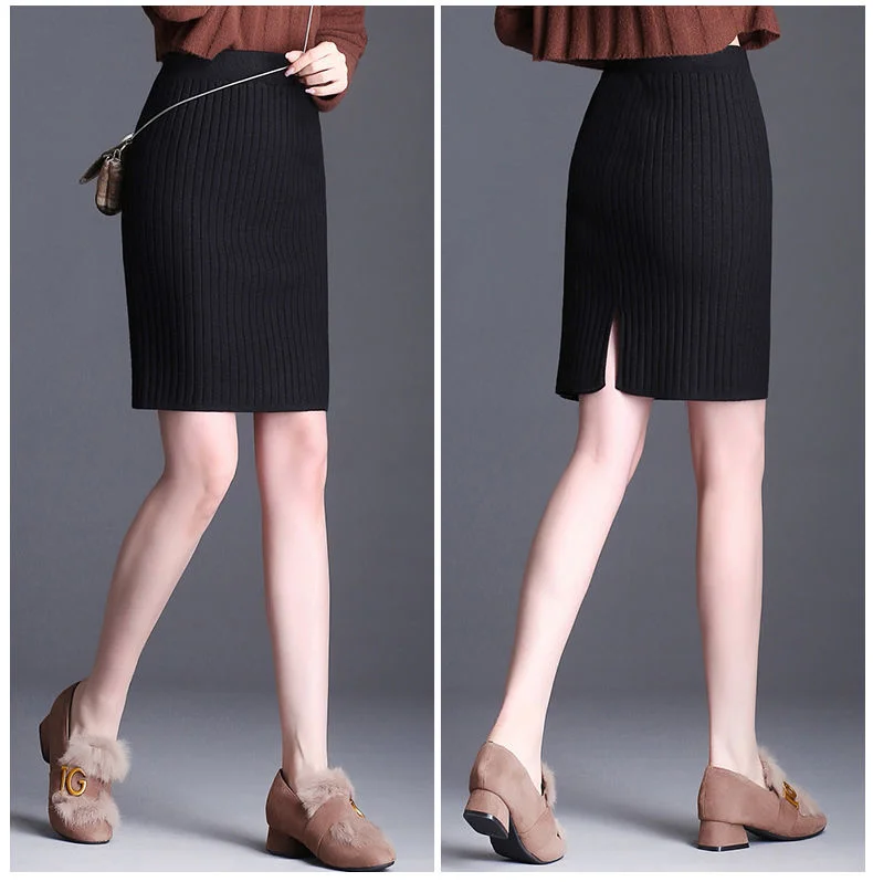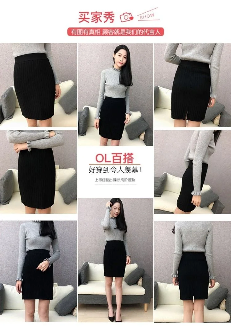 Женская трикотажная шерстяная юбка, трапециевидная юбка с высокой талией и разрезом, 2020