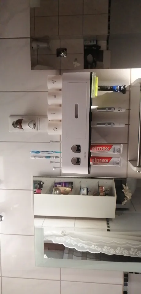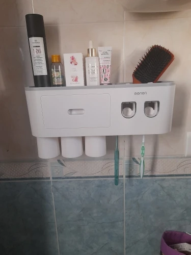 muy buen servicio este soporte para complementos de baño y dental , se fija perfecto a la superficie de los azulejos , viene con soporte para pegar y pega bastante fuerte , pero si alguno tiene dudas puede ponerle a mayores cinta de doble cara para mayor sujeción .muy recomendable