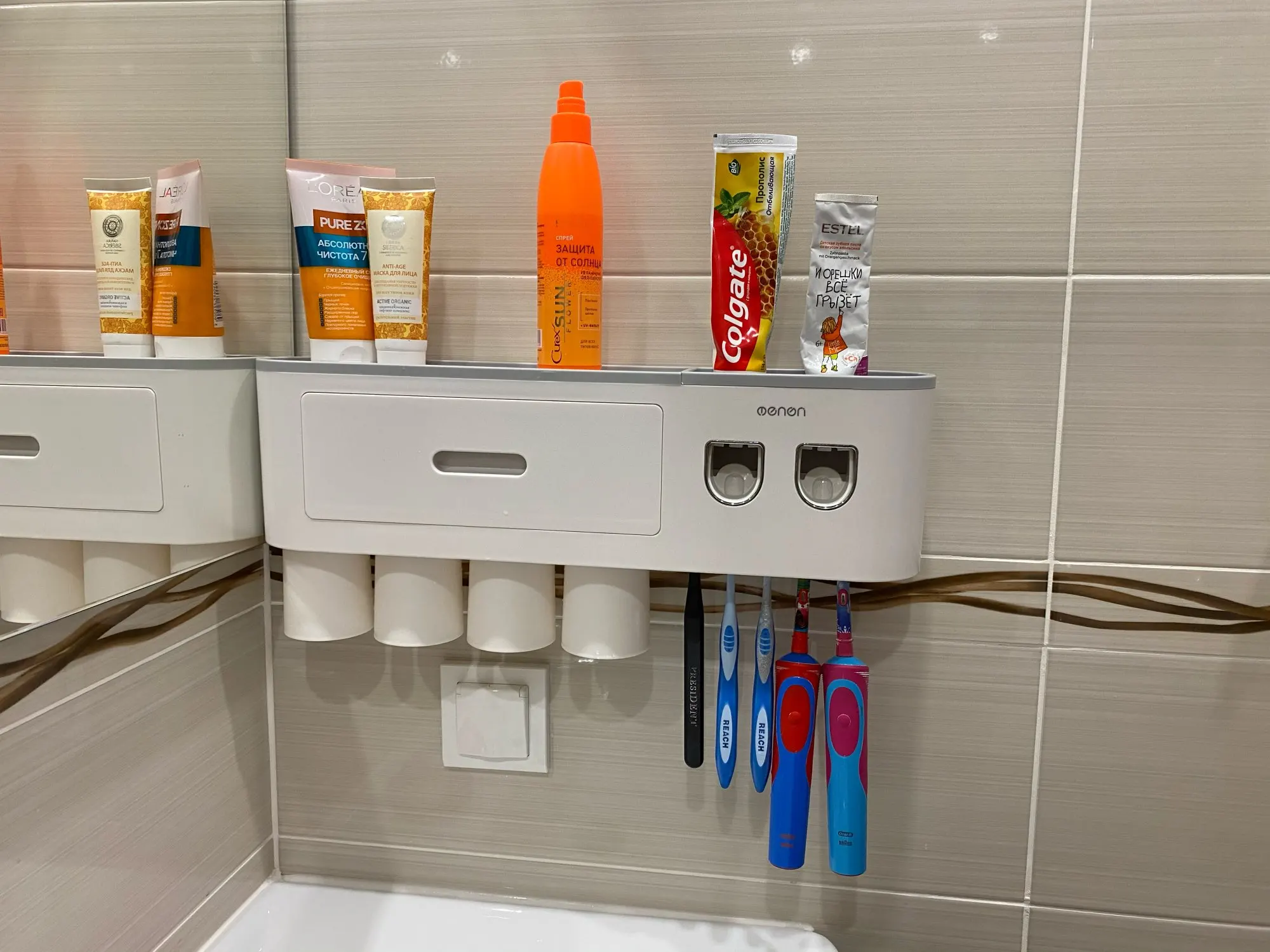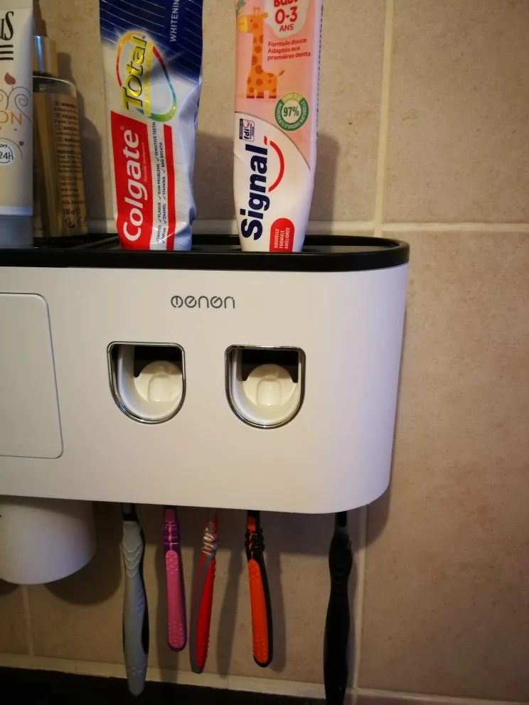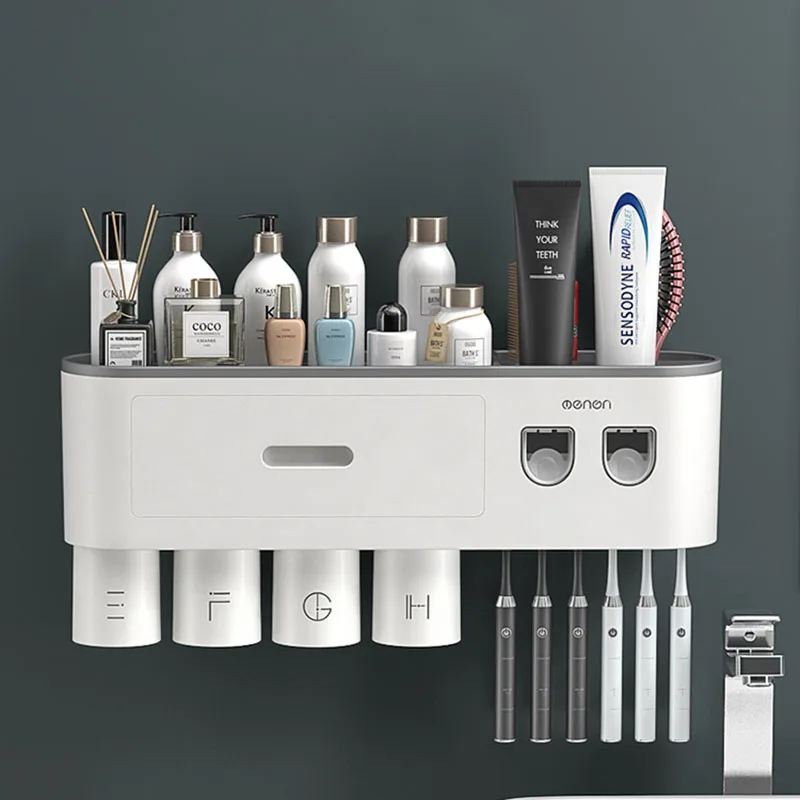 Настенный держатель для зубных щеток ONEUP, Магнитный двойной автоматический дозатор зубной пасты, стеллаж для хранения, аксессуары для ванной комнаты