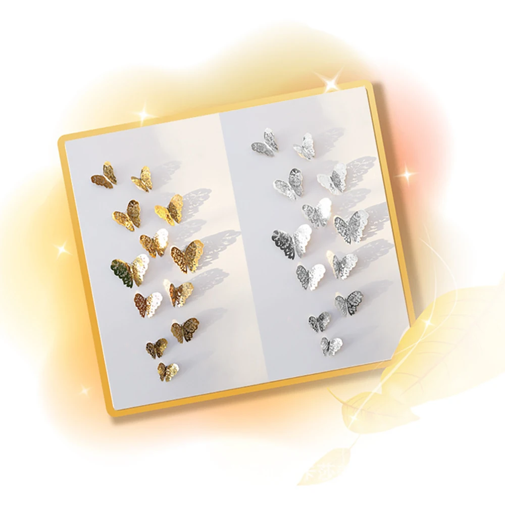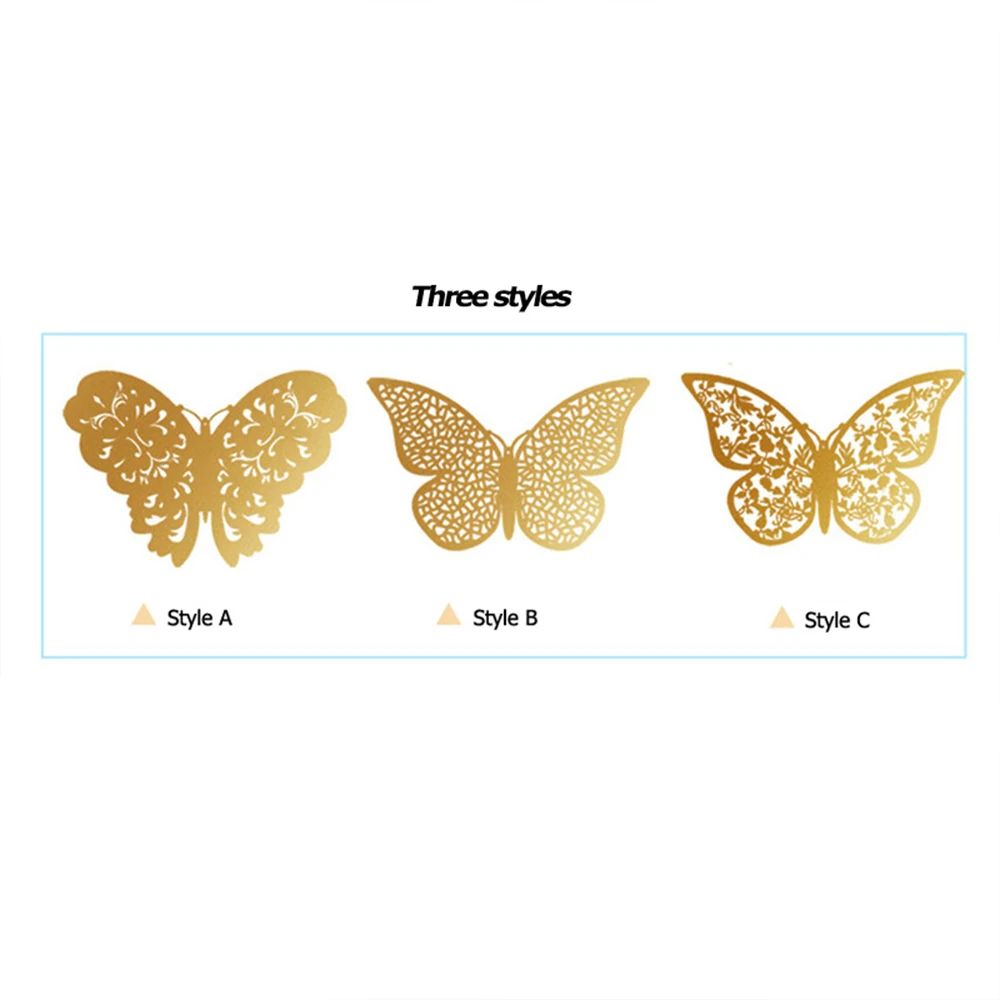 12 шт.компл. розовое золото 3D полые бабочки наклейки на стену для ...