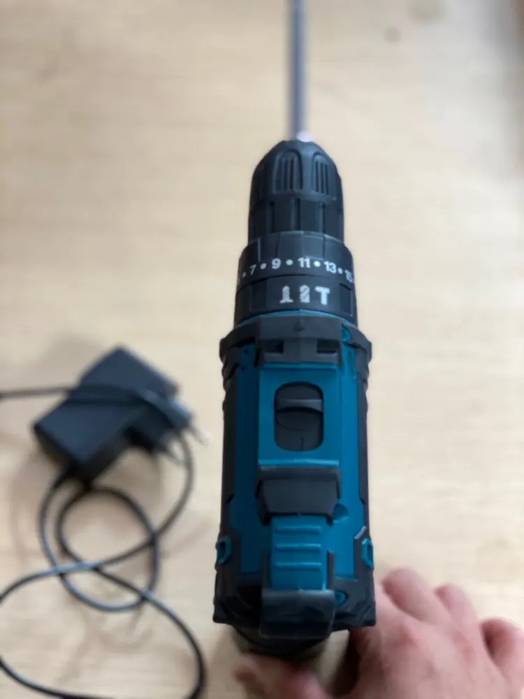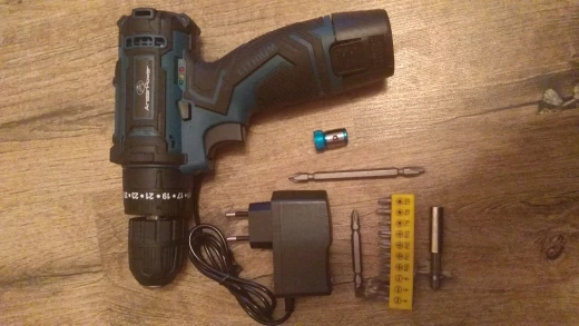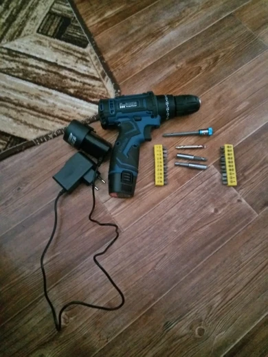 Компактный 12v шуруповёрт для домашних работ. Выиграл на трансляции, за что продавцу большое спасибо. Есть режим сверления и режим перфоратора, но по сути это именно шуруповёрт, и для сверления мелких отверстий. Peжим отбойного молотка, на мой взгляд фейковый. Понравилось, что без проблем подходит аккумулятор от Deko и Hilda В руке лежит удобно, к комплекте был маленький набор бит и зарядное устройство. Шурик понравился, работать с ним легко и удобно, рекомендую к покупке!