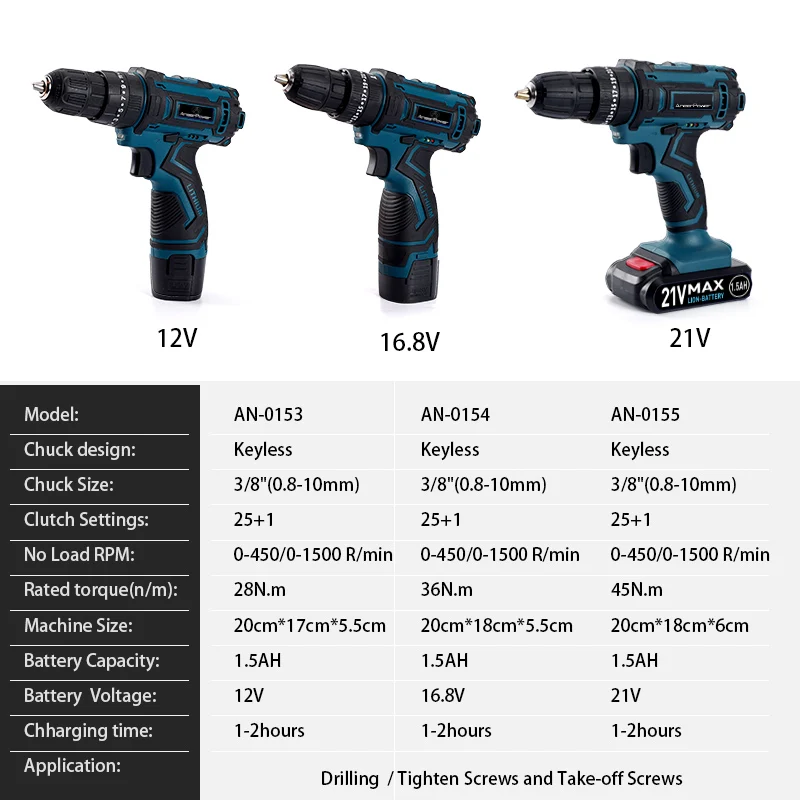 Новый стиль, 21 в, 16,8 в, 12 В, Электрическая аккумуляторная отвертка с 3 функциями, беспроводная ударная дрель, ручная мини-дрель с литиевой батареей и зарядкой