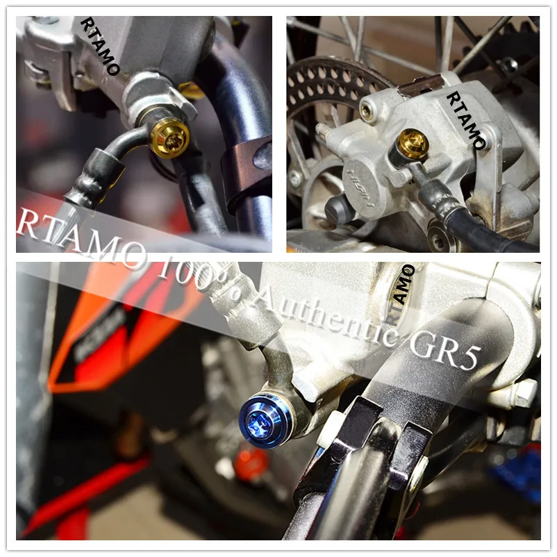 Титановые болты для банджо M10x1.0P/1,25 P винты для тормозных шлангов, главный цилиндр, запчасти для мотоцикловМатериал: титановый сплав, класс 5Размер: M10 x 19.5mmLЦвет: черный/золотой/PVD синий/радужный/фиолетовый/зеленый/натуральный Титан
