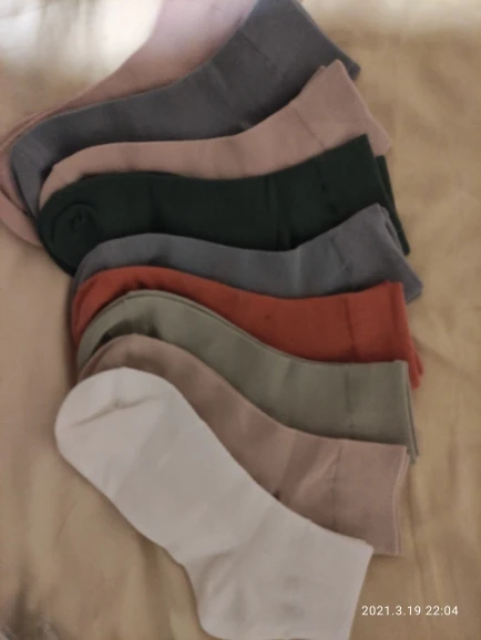 Отличные носочки, полностью соответствуют фото продавца, брака нет. Цвет такой же как на фото продавца, у меня искажает камера. Подходят как на женскую, так и на мужскую ногу. Мужу на 44 размер ноги подошли, после стирки даже ещё растянулись. В общем рекомендую, заказала ещё пару.
