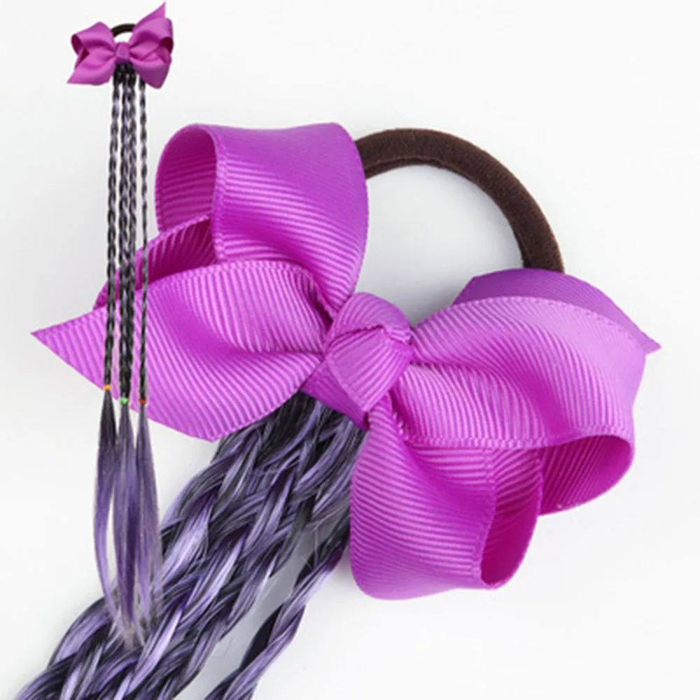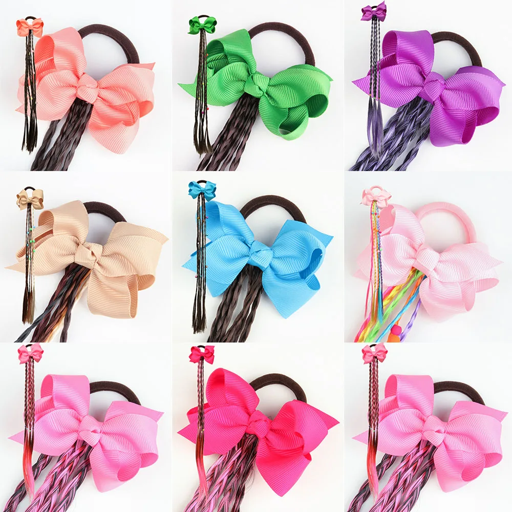 Удлинители для волос для девочек, искусственные косы, повязка на голову для хвоста, цветные парики, плетеная веревка с бантом