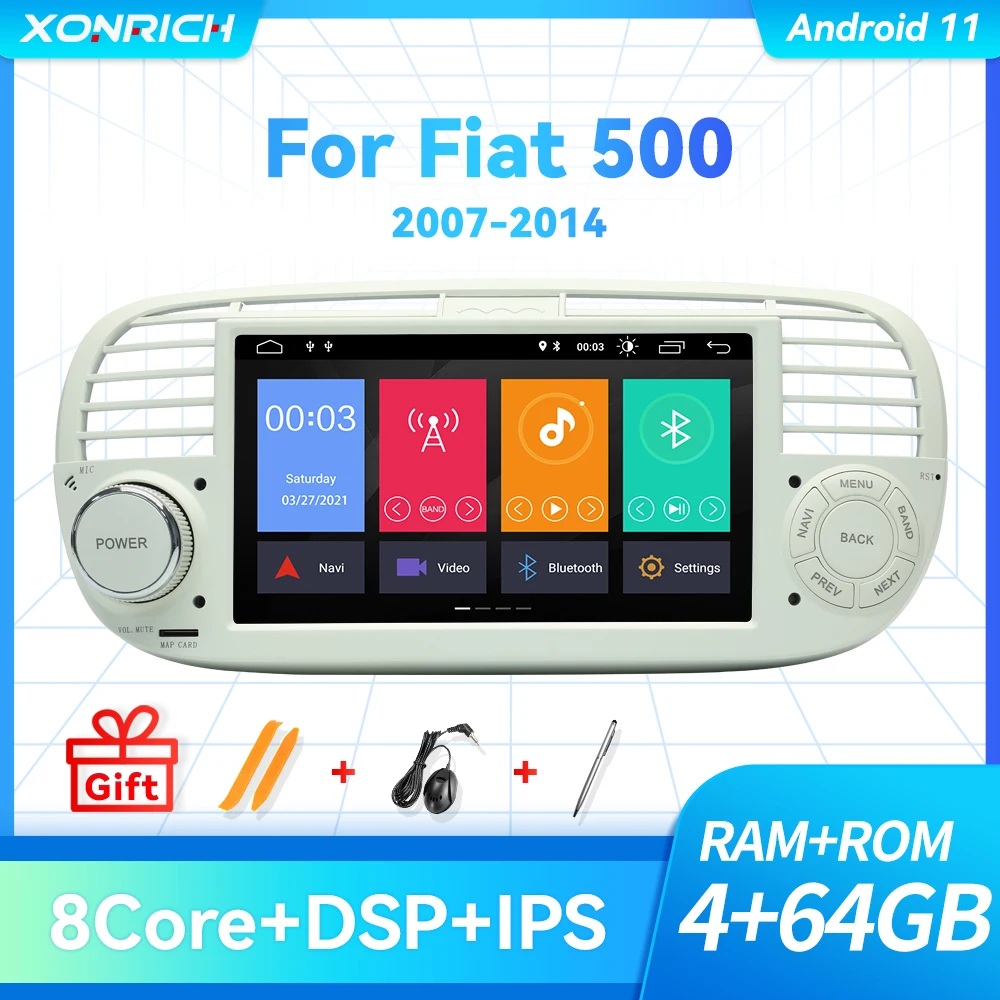 Автомагнитола, 8 ядер, Android 11, IPS, DSP, 4 ГБ, 64 ГБ, 1 Din, DVD-плеер для FIAT 500, мультимедиа, GPS-навигация, стерео, аудио, головное устройство