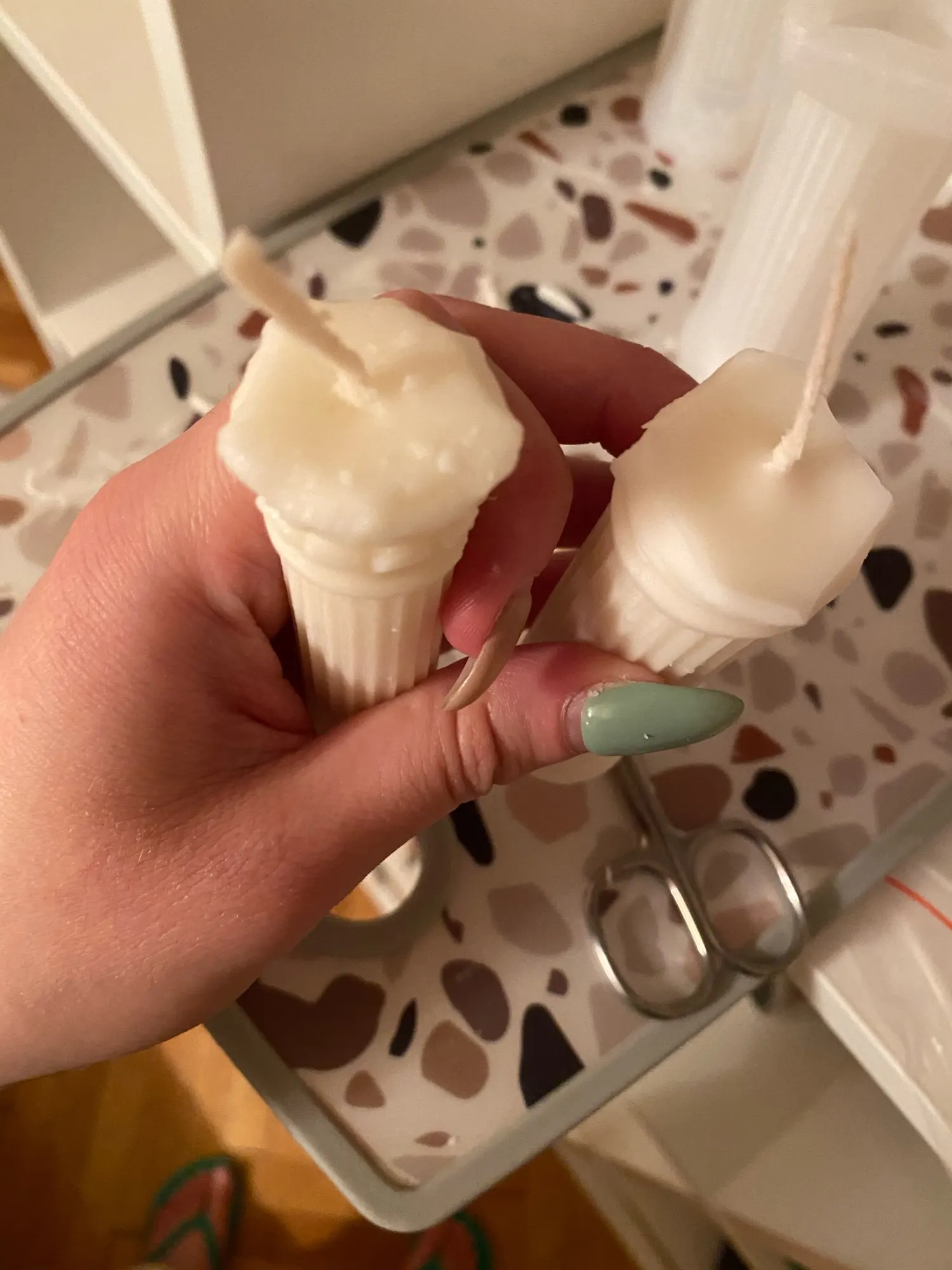 Формы отличные, чтобы достать свечи, нужно дождаться полного остывания, потом положить в морозилку, затем постучать формой по столу, только тогда свеча выйдет. Либо немного разогреть на пару или в духовке.