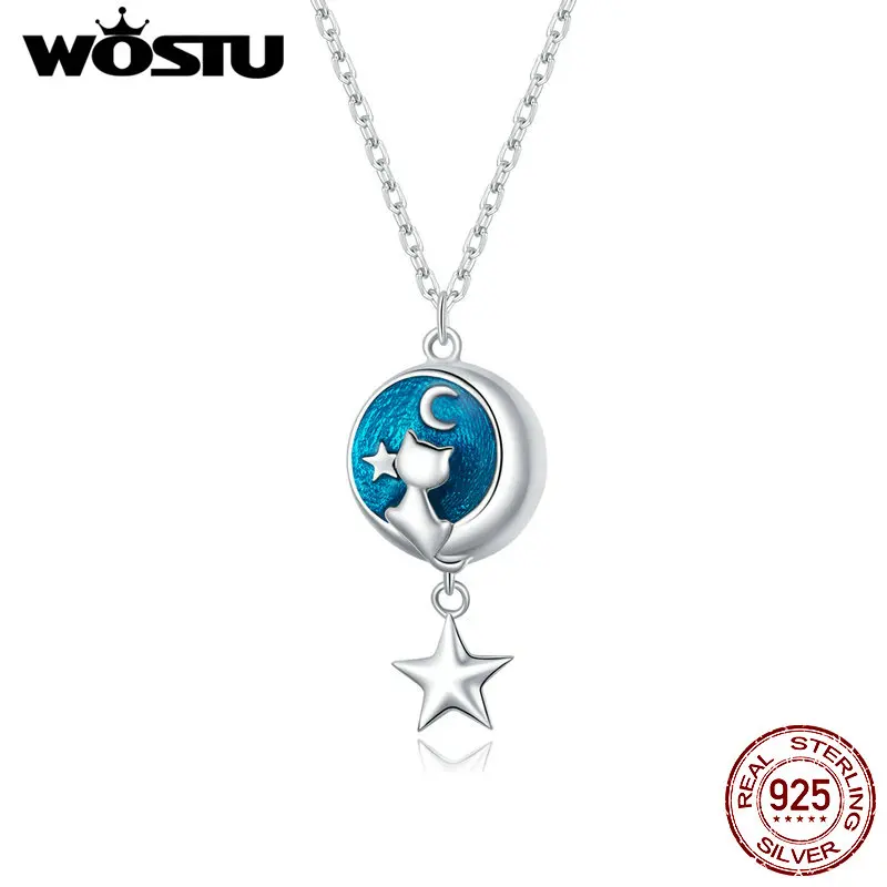 WOSTU 2020 прибытие Луна кошка ожерелье из стерлингового серебра 925 пробы Длинная цепочка ожерелье для женщин S925 хорошее ювелирное изделие подарок FIN422