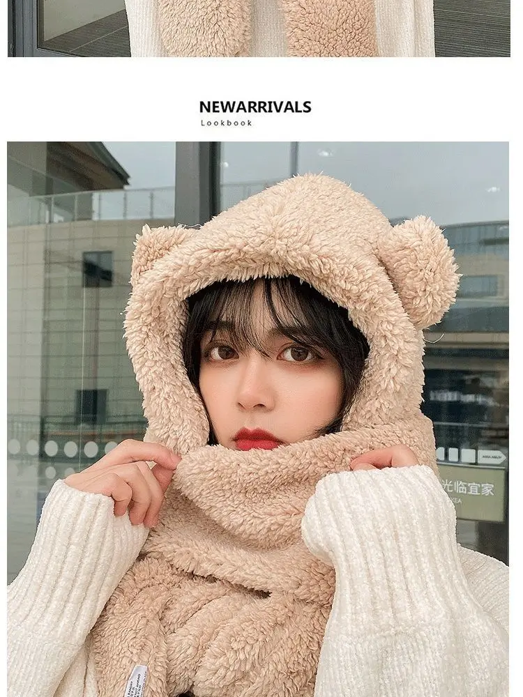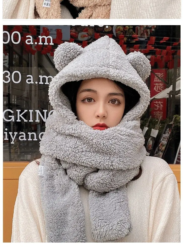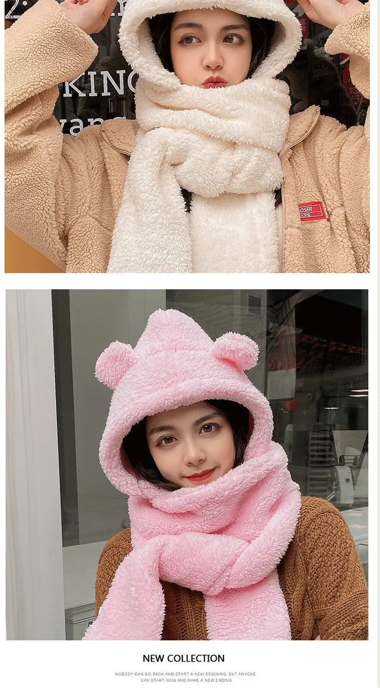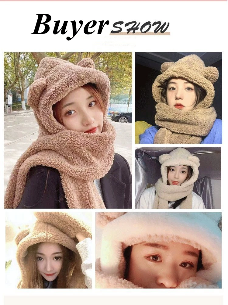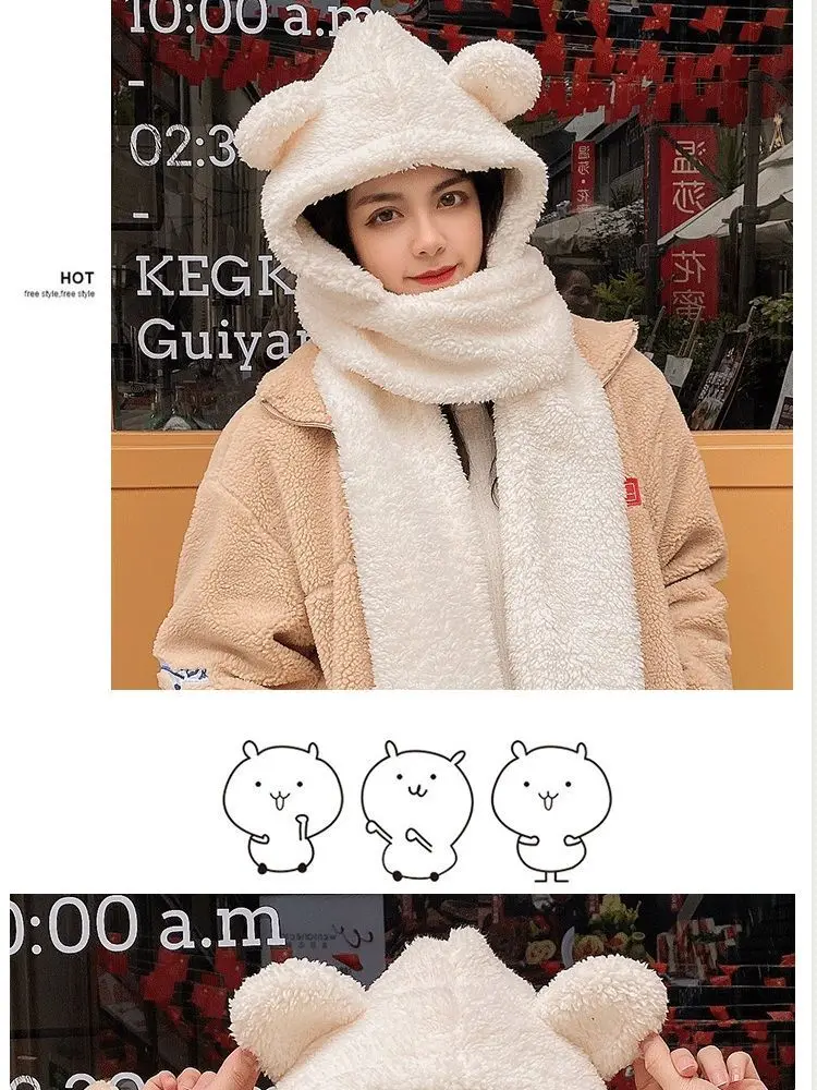 Корейский зимний комплект из плюшевого шарфа и шарфа, милая шапка с...