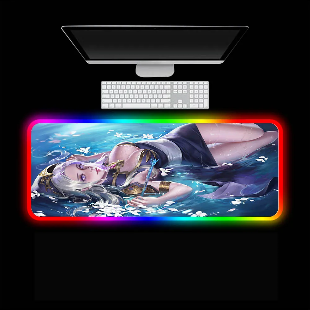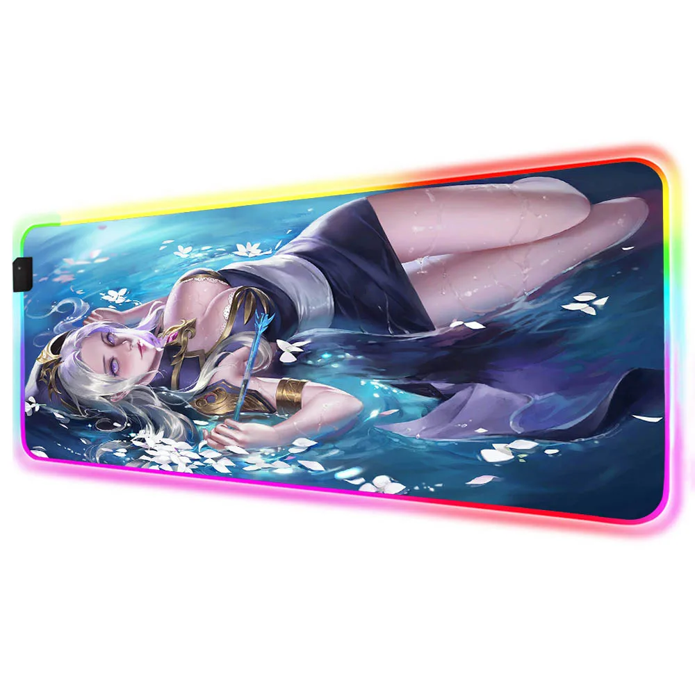 Компьютерный светящийся игровой коврик для мыши с аниме девочкой го...