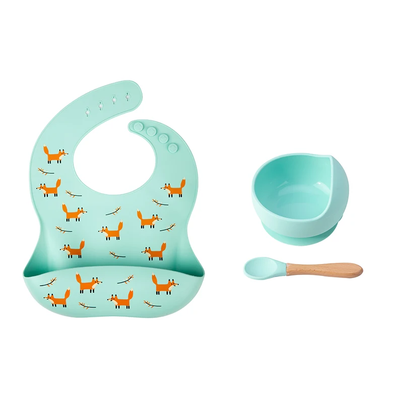 Детские разноцветные силиконовые нагрудники для кормления, чаша, вишня, лиса, посуда, водонепроницаемая Нескользящая посуда, без БФА, силиконовая посуда для BabyBowl