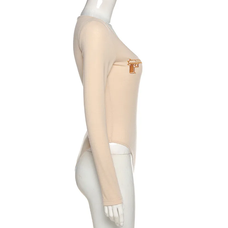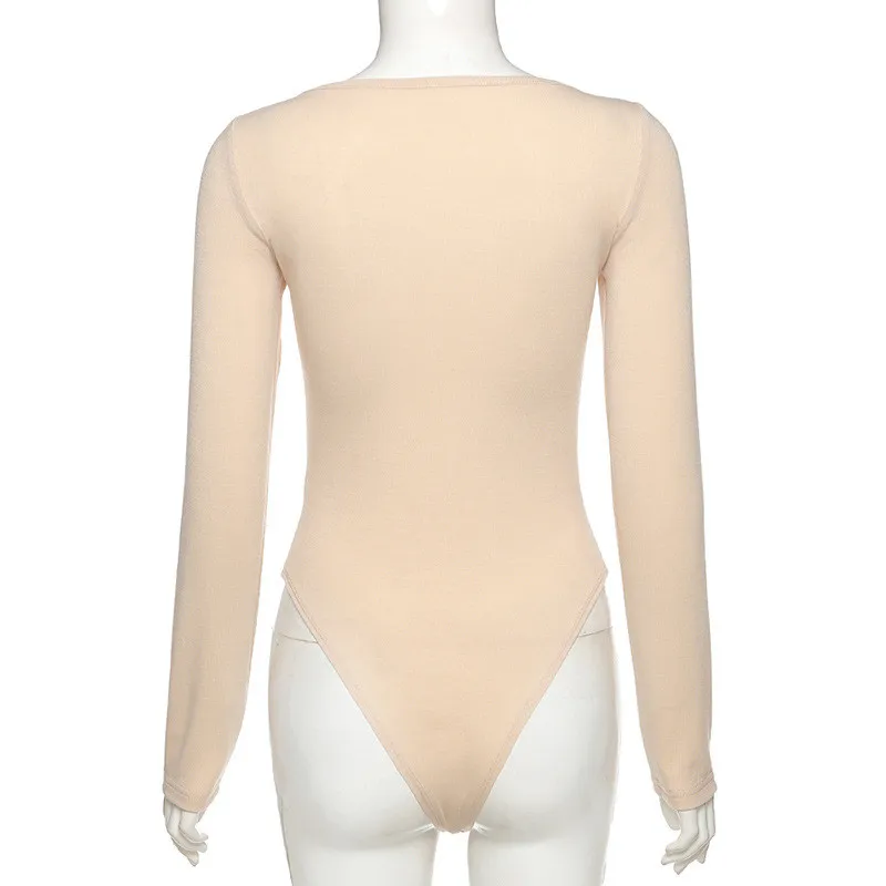 Тип товара: женский однотонный боди с длинным рукавом и u-образным вырезом
