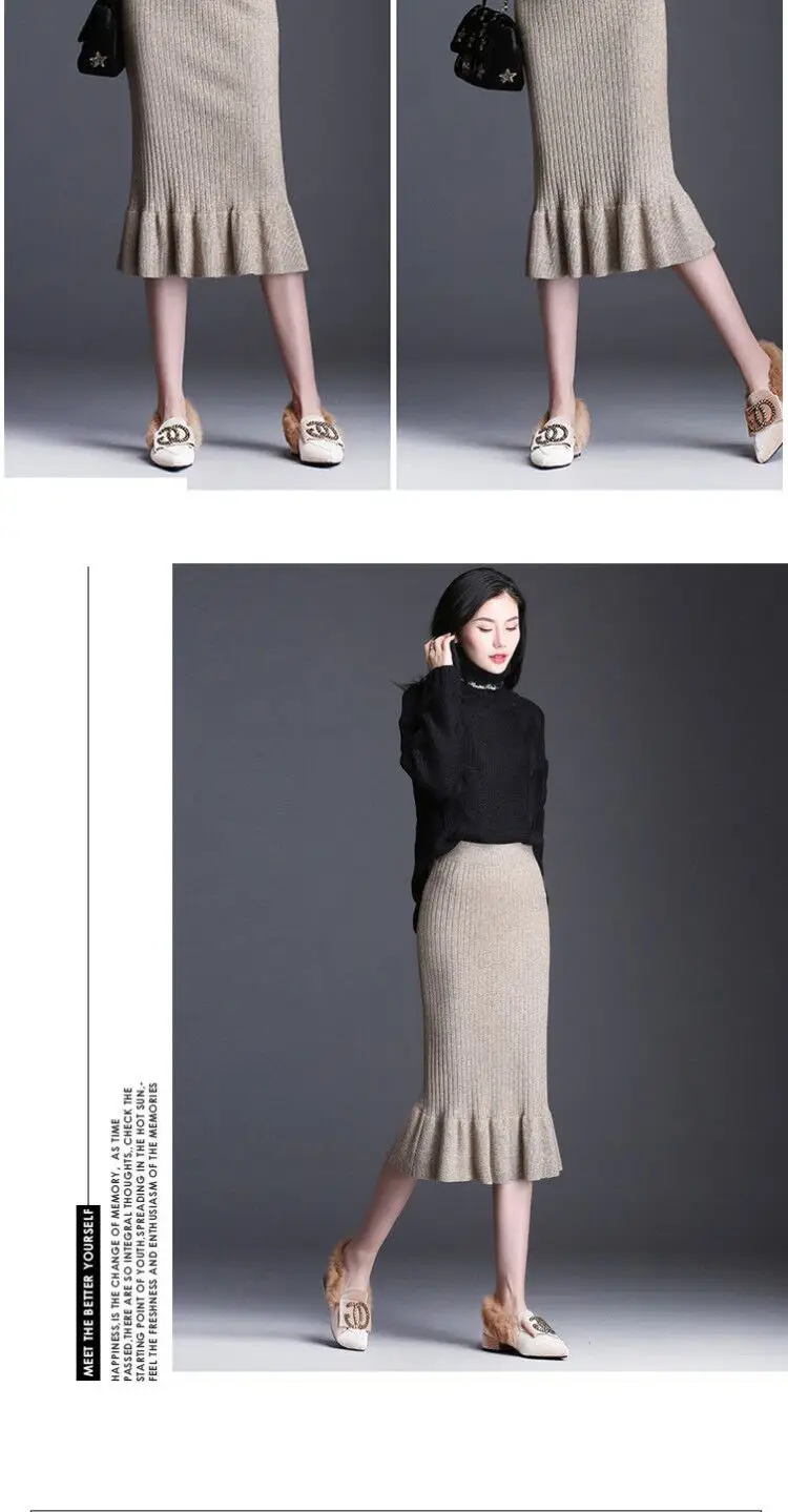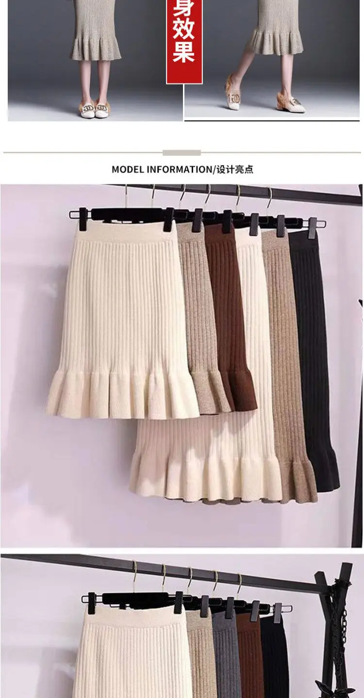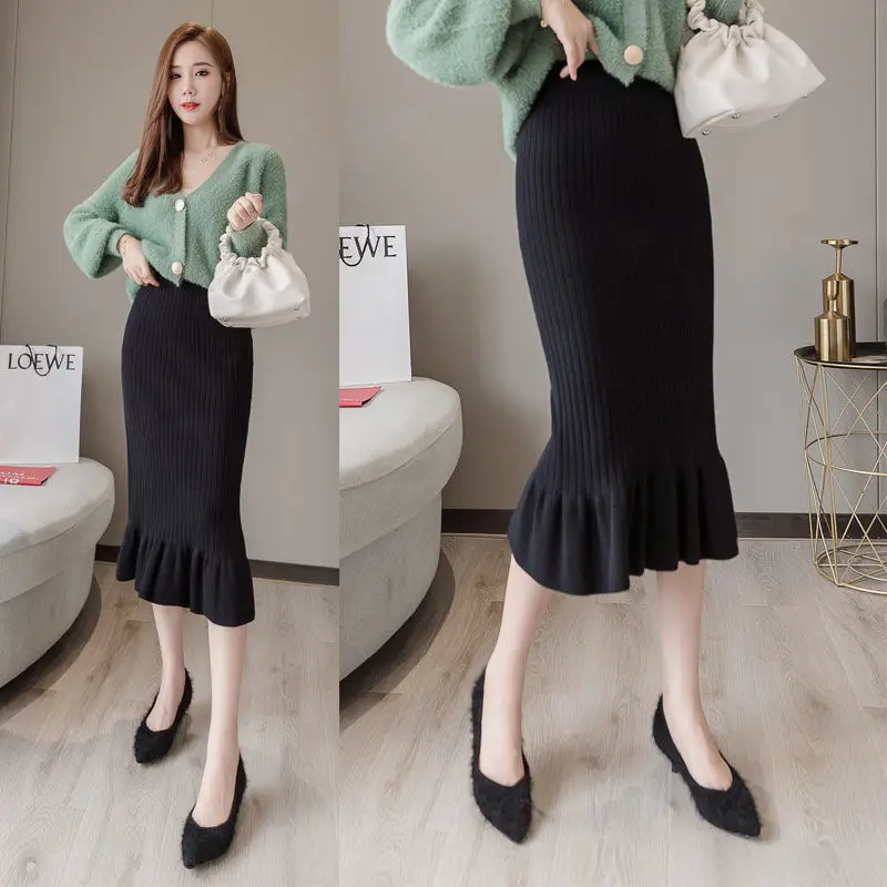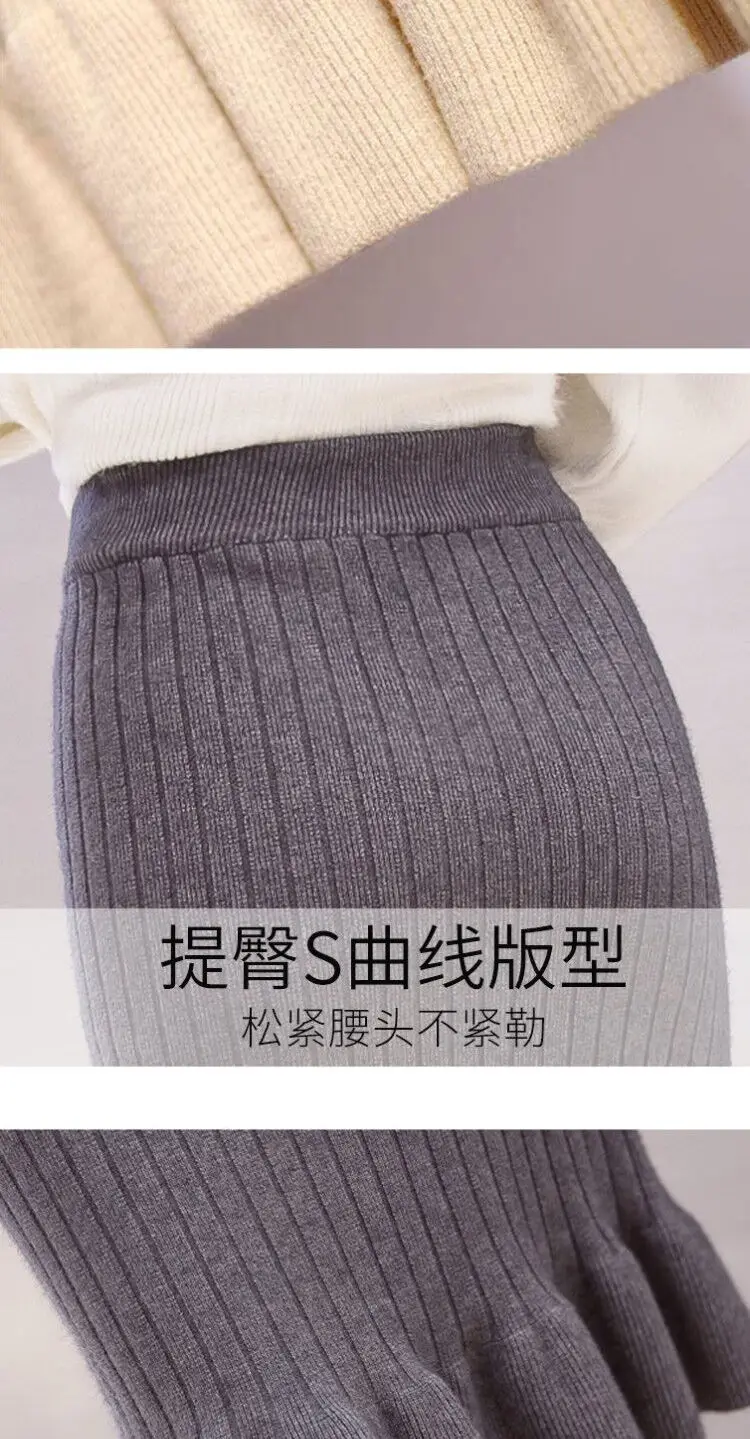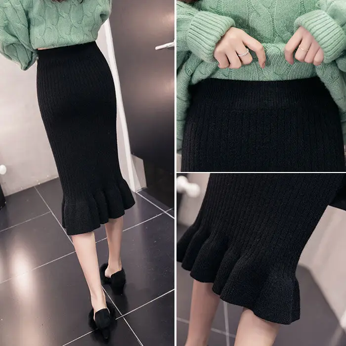 Плотная шерстяная юбка рыбий хвост 2020, осенне-зимняя Длинная вязаная юбка с высокой талией, Женская юбка, женские юбки, женские юбки